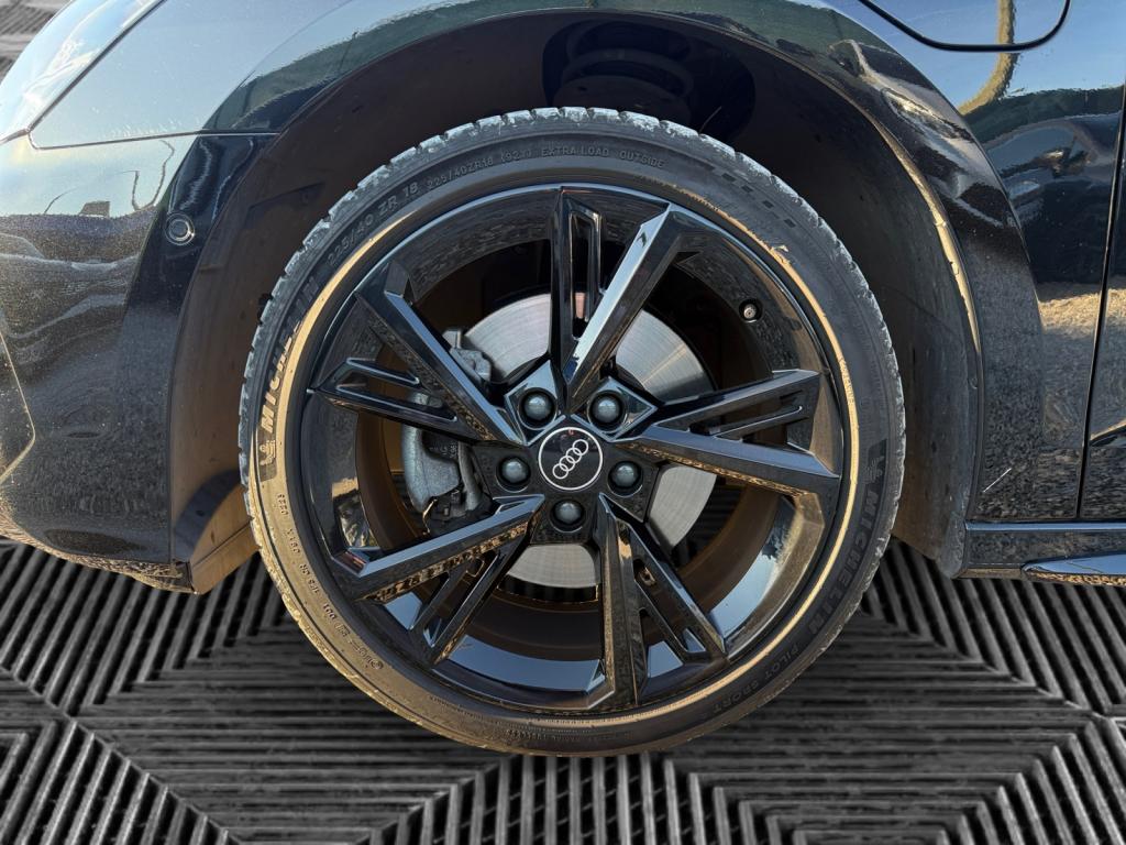 2 prises USB à l'arrièreAirbags latéraux à l'avant, avec airbags de têteAppel d’urgence Audi connectApplications décoratives en aluminium spectre foncéAudi connect Appel d’urgence & ServiceAudi Drive SelectAudi Park AssistAudi pre sense frontAudi smartphone interfaceAudi sound system : 10 haut-parleurs incluant un haut-parleur central et un subwoofer ; amplificateur à 6 canaux avec une puissance totale de 180 wattsAudi virtual cockpitAvertissement de sortie de voieBanquette arrière rabattable 40/60Câble de recharge HH Type E (8 A)Câble de recharge mode 3Caméra de reculCiel de pavillon en tissu noirClé à fréquence radio (sans safelock)Climatisation automatique confort 2 zonesCommande de désactivation d'airbag passager avantContrôle de la pression des pneumatiquesDétecteur de pluie et allumage automatique des projecteursDirection assistée électromécanique asservie à la vitesseEcrous antivolI-Size et Top Tether pour les sièges arrière extérieursInterface BluetoothJantes en alliage léger, 5 branches en Y, Gris Graphite, tournées brillantes, dimension 8,0J x 18 avec pneus 225/40 R18Kit anticrevaison (compresseur et produit de colmatage)MMI navigation plus avec MMI touchOutillage de bordPack Eclairage intérieurPack Extérieur S linePack Intérieur S linePare-brise avec isolation acoustiquePeinture verniePhares à LED avec clignotants dynamiques à l’arrièreRappel de ceinture de sécurité avec dispositif arrière de détection d’occupation du siègeRéception radio numérique (DAB)Régulateur et limiteur de vitesseRétroviseur intérieur à position nuit automatique, sans encadrementRétroviseurs extérieurs couleur carrosserieRétroviseurs extérieurs réglables, dégivrants, rabattables électriquement avec fonction rabat automatique (côté passager avant, marche arrière enclenchée) et fonction jour/nuit automatique des deux côtésSécurité enfant électriqueSièges avant réglables manuellementTrousse de secours, triangle de présignalisation et 2 vestes de sécuritéVolant 3 branches multifonctions plus en cuir et palettes de changement de vitesses