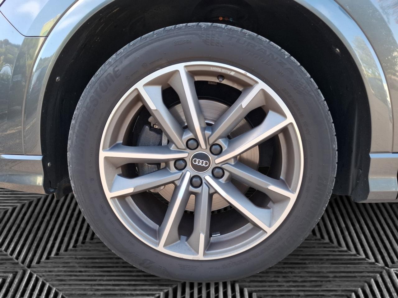 Airbags latéraux à l'arrière Applications décoratives en aluminium argent Assistant de feux de route Assistant de maintien de la vitesse adaptatif Audi connect Audi connect navigation et divertissement plus Audi virtual cockpit plus Caméra de recul Contrôle de vitesse en descente Crochet d'attelage Jantes en aluminium coulé Audi Sport 5 branches doubles,... Pack Brillance extérieur Peinture métallisée Rétroviseurs extérieurs réglables, dégivrants,... Sellerie Cuir / Similicuir monopur 550 Sièges avant chauffants Vitres arrières surteintées (vitrage privacy)