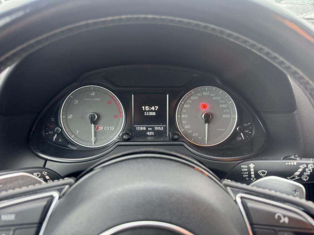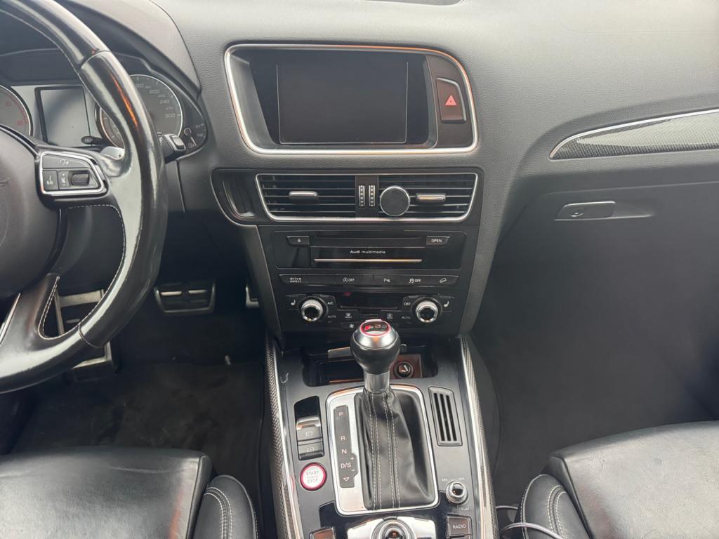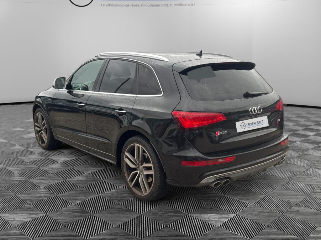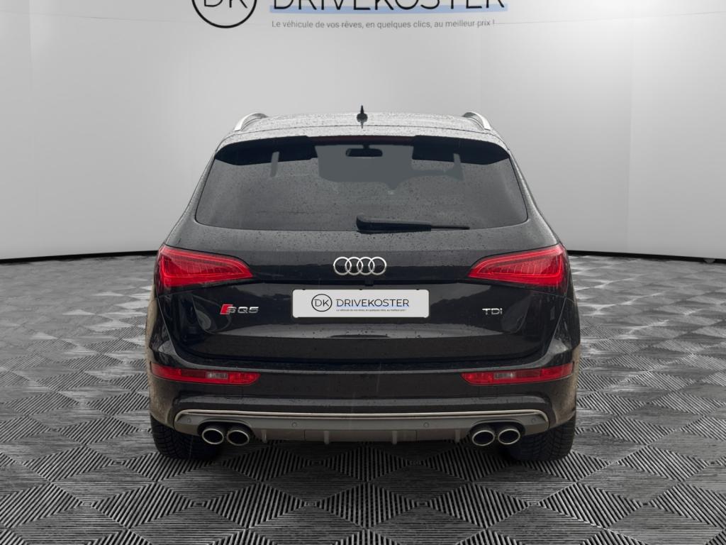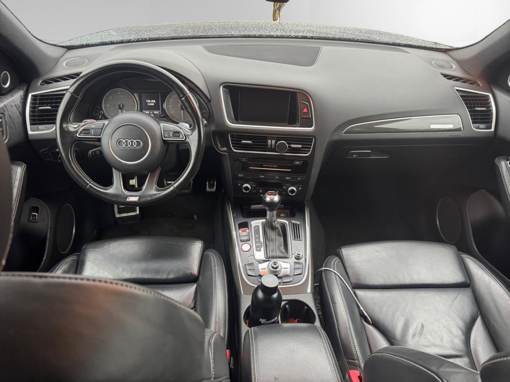 Accoudoir central à l'avant, pour conducteur et passager avant, coulissant en longueur de 65 mm, inclinaison réglable rabattable, avec vide-poches sous l'accoudoir central, incluant deux porte-boissons et prise de 12 V dans la console centraleAccoudoir central avant avec vide-poches et 2 prises 12 VAccoudoir central dans le dossier des sièges arrière, rabattableAdaptive Light : projecteurs directionnelsAdvanced Key : système d'autorisation d'accès et de démarrage main libreAirbag grand volume conducteur et le passager avant, détection de la position du siège, airbag adaptatif conducteur et passager avantAirbags latéraux (airbag thorax et bassin à l'avant)Antidémarrage électronique intégré à la commande du moteur ; activation automatique par la clé du véhiculeAntipatinage électronique ASRApplications décoratives en aluminium brossé matAppuie-tête, réglables à l'avant et à l'arrièreAssistance au freinage d'urgence, amplificateurs de freins en tandemAudi BackguardAudi connect (inclut GPS Advanced et préparation téléphone 8W)Audi Hold AssistAudi Music InterfaceAudi Sound System (180 W)Audi Tracking SystemAvertisseur de freinage d'urgence et fonction de séchage de disques de freins automatiqueAvertisseur deux tons sur le moyeu du volantBadges “V6T” sur les ailes avant et emblème “SQ5” sur les étriers de freinsBanquette arrière rabattable 60/40, déverrouillage à distance des dossiers via un levier dans la garniture latérale du coffreBecquet de pavillonBoîte à gants éclairéeCarrosserie galvanisée: autoportante, soudée au groupe-plancher, zones de déformation définies à l'avant et à l'arrièreCeintures de sécurité : ceintures trois points à enrouleur pour tous les sièges, avec contrôle du port à l'avant, assorties à la couleur de l'habitacleCendrier dans la console centrale à l'avant et à l'arrière, allume-cigare à l'avantCendrier éclairé à l'avantChâssis DynamiqueClimatisation automatique confort 3 zonesCoffre et hayon éclairésColonne de direction de sécuritéConsole centrale, surélevée, avec compartiment de rangement et volet roulantContact d'allumage électroniqueContrôle de pression des pneus ( TPMS )Contrôle électronique de stabilisation (ESC) avec détection de barres de toit et mode offroadDétecteur de pluie et de luminosité incluant rétroviseur intérieur jour/nuit automatiqueDéverrouillage de coffre par touche douce : déverrouillage avec assistance électriqueDirection assistée électromécanique, direction à crémaillère sans entretien avec asistance asservie à la vitesseEclairage intérieur, à temporisation avec contacteur sur toutes les portièresEcran central avec affichage en couleurEcrous antivolEssuie-glace arrière avec déclenchement automatique en marche arrièreEssuie-glace deux vitesses : réglage d'intermittence sur 4 niveaux, commande de balayage coup par coup, lavage-balayage automatiqueÉtui à lunettes, dans le module d'éclairage intérieur avant, au-dessus du rétroviseur intérieurFeux arrière, rouges, avec feux de recul blancs, feux arrière de brouillard intégrés, avec capot de coffre ouvert : fonction feux arrière dans le bandeau d'éclairage du pare-chocsFeux de route assistés : gestion automatique du passage de feux de croisement à pleins phares et inversementFilet de séparation, vertical, amovibleFrein de stationnement electromécaniqueFreins à disques ventilés à l'avant et à l'arrièreHayon assisté électriquement pour l'ouverture et la fermetureIdentification du modèle à l'arrière, inscription “SQ5” à l'arrière, sur la calandre et sur l'embase du volantIndicateur de rapport de vitesse dans le système d'information du conducteurIndication de l'usure des garnitures de freins à l'avant ; affichage sur l'écran centralInstrumentation, avec éclairage réglable : tachymètre électronique avec compteur kilométrique totalisateur et journalier, compte-tours, heure, affichage de la température du liquide de refroidissement et de la réserve de carburantJantes en aluminium coulé style 5 branches double S, 8,5 J x 20” avec pneus 255/45 R20 100WLampe à l'avant avec deux spots de lecture supplémentairesLampes à l'arrière avec fonction spots de lectureLève-vitres électriques à l'avant et à l'arrière avec protection antipincement et fonction ouverture/fermeture Confort par impulsionLimiteurs d'effort sur les ceintures de sécurité avantLunette arrière dégivrante avec minuterieMiroir de courtoisieOEilletons de fixation, quatre oeilletons dans le coffre pour arrimer le chargementOrdinateur de bord couleur, système de contrôle Autocheck et programme efficiencyOutillage de bord dans le coffrePack Aluminium extérieurPack Éclairage intérieurPack RangementPare-soleil, rabattables et pivotants, côté conducteur et passager avantParking System Plus avec caméra de reculPeinture intégrale : pare-chocs avant et arrière et bas de caisse en couleur carrosseriePhares antibrouillard intégrés dans le bouclier avantPoignées de maintien avec mécanisme amortisseur : quatre poignées encastrées dans le ciel de pavillonPoignées de portes couleur carrosseriePorte-boissons double dans la console centralePréparation pour crochet d'attelagePréparation pour siège enfant ISOFIX pour sièges latéraux arrièrePrétensionneurs des ceintures de sécurité avantProjecteurs antibrouillardProjecteurs Xénon Plus incluant lave-phares, feux de jour à LEDQuattro, transmission intégrale permanente avec répartition asymétrique et dynamique de couple, différentiel central autobloquant, blocage électronique de différentiel EDS par intervention sur les freins des roues motricesRampes de pavillon en aluminium poli incluant barres de toit transversalesRégulateur de vitesseRéservoir avec protection contre les erreurs de ravitaillementRétroviseurs extérieurs : avec clignotants à diodes intégrés, réglables et rabattable électriquement, dégivrants avec coques l