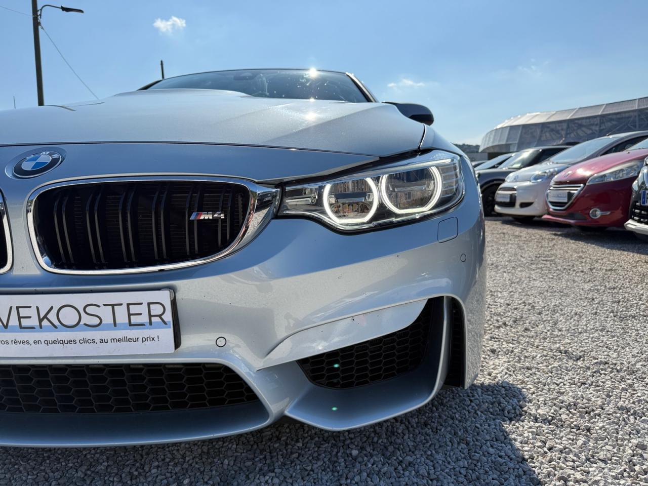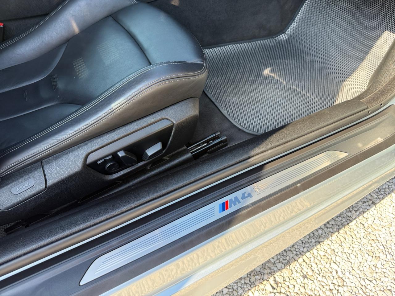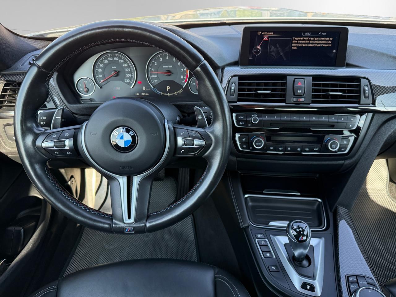 2 porte-boissons dans la console centrale avant2 prise 12V dans la console centrale avant et dans la console centrale arrièreABS (Antiblocage de roues)Accoudoir central arrièreAccoudoir central avant coulissantAffichage BMW EfficientDynamics dans le cadran d'instrumentationAffichage tête haute HUD couleur avec affichages spécifiques M et limitations de vitesseAide au démarrage en côte, pré-charge du circuit de freinage au lever de pied, séchage des disques de freins et compensation du fadingAirbags de tête avant et arrière avec voile de protection contre les débris de verreAirbags frontaux conducteur et passager (déconnectable côté passager)Airbags latéraux avantAnneaux d'arrimage dans le coffreAntenne de toit « aileron de requin »Anti-démarrage électroniqueAppel d'Urgence IntelligentAssistance au freinage d'urgenceAutoradio BMW Professional CD compatible MP3, 6 haut-parleurs, prise AUX-IN, port audio USB, double Tuner, RDS et streaming audio Bluetooth (avec "Music Search")Badge "M4" apposé au niveau du coffre à droiteBaguettes de seuils avec inscription BMW MBanquette arrière 2 places avec dossiers rabattables asymétriquement 60/40Barre anti-rapprochement en fibre de carbone sous le capot moteurBMW Service Inclusive (entretien et garantie constructeur pendant 5 ans et/ou 100 000 km)Boîte de vitesses M DKG 7 rapports à double embrayage avec DrivelogicCapteur d'impact : déverrouillage du véhicule, allumage de l'éclairage de l'habitacle et activation des feux de détresseCarrosserie légère aluminium/acierCeintures de sécurité à 3 points (tous les sièges) avec prétensionneur pyrotechnique et limiteur de tension (à l'avant)Ciel de pavillon "Anthrazit "Clés radiocommandées à mémorisation automatique des réglages "Personal Profile"Clignotants avant et arrières à LEDClimatisation automatique 3 zones avec filtre microporeux et fonction de recyclage d'airConciergerieConnectivité avancéeConstruction allégée intelligenteContours de calandre chromés, doubles barreaux verticaux noirs et logo "M4"Contrôle de freinage en courbe CBCContrôle Dynamique de la Stabilité DSC+Contrôle Dynamique de la Traction DTCDémarrage sans clé via le bouton de démarrage Start/Stop avec contour chroméDétecteur de pluie et allumage automatique des projecteursDétection de l'occupation du siège passager avantDifférentiel Actif M à commande électronique avec blocage du couple variant de 0 à 100%Direction à assistance électrique variable en fonction de la vitesseEclairage d'ambiance avec 2 couleurs au choix et éclairage d'approche dans les poignées extérieuresEclairage de bienvenue et d'accompagnement "Follow-me-home"Eclairage plafonnier soft-on/soft-off et éclairage du coffreEcran d'information central couleur 8.8" (22,4 cm) avec commande par "Controller" iDrive et 8 touches de raccourcis programmablesEcrous antivolFeux arrière avec guides de lumière à LEDFeux de stop dynamiquesFixations Isofix aux places latérales arrièreFonction d'arrêt et de redémarrage automatique du moteurFonctions "Ma BMW à distance"Freins à disques perforés hautes performances à étrier fixe peint en bleuGestionnaire M DriveIndicateur de maintenance CBS tenant compte des conditions de conduiteInformation Trafic en Temps Réel RTTIInterface Bluetooth pour téléphone portable (mains-libres)Jantes en alliage léger 18'' style 513 M à rayons en V avec monte pneumatique mixteKit de mobilité BMWKit fumeurLave-pharesLimiteur et régulateur de vitesse avec maintien de la vitesse en descenteMesure individuelle de pression des pneumatiquesMesures BMW EfficientDynamicsMiroirs de courtoisie éclairés intégrés aux pare-soleilMotorisation BMW M TwinPower TurboNavigation multimédia ProfessionalNotice d'utilisation de la voiture intégrée et carnet d'entretien électronique avec BMW Service HistoryOrdinateur de bord, Check-Control et indicateur de température extérieureOuïes latérales au traité en relief avec entourage chromé inscription "M4"Pack Advanced Full LEDPare-chocs arrière au design spécifique avec diffuseur (couleur carrosserie)Pare-chocs auto-régénérants jusqu'à 4 km/h avec éléments déformables jusqu'à 15 km/hPare-chocs avant au design spécifique avec 2 grandes prises d'airProjecteurs Advanced Full LED avec quatre anneaux lumineux blancs à technologie LED pour éclairage diurneRadars de stationnement avant et arrière PDC avec représentation graphique des obstacles sur l'écran d'information centralRepose-pied conducteur siglé "M"Rétroviseur intérieur électrochromeRétroviseurs extérieurs avec rappel de clignotantRétroviseurs extérieurs et buses de lave-glace chauffantsRétroviseurs extérieurs M couleur carrosserie à réglage électrique, asphériques, dégivrants, électrochromes et rabattables électriquementRétroviseurs extérieurs spécifiques M dans la couleur de la carrosserie, aérodynamiquement optimisésSélecteur de mode de conduite - 3 modes : "Efficient", "Sport", "Sport+"Sellerie cuir MerinoServices Après-Vente connectés BMW TeleServicesServices BMW ConnectedDriveShadow Line brillant BMW IndividualSièges avant électriques à mémoires conducteur avec soutien lombaireSièges avant Sport M intégraux avec logo "M" rétroéclairéSorties d'échappement rondes, doubles et chromées de chaque côtéSystème de récupération de l'énergie au freinageSystème Hi-Fi 9 haut-parleurs 205 WattsTableau de bord avec écran d'informations haute résolution et instrumentation spécifique M avec aiguilles rouges, zone rouge dynamique, cadrans illuminés blanc et emblème "M"Toit en PRFC et baguette de toit noiresTrain arrière multibrasTrain avant à double articulationTriangle de présignalisation avec kit de premiers secoursTroisième feu stop à LEDVerrouillage centralisé avec télécommandeVide-poches ergonomiques dans les portes avantVitrage teinté pour réduire l'échauffement dû à l'ensoleillementVitres avant et arrière électriq