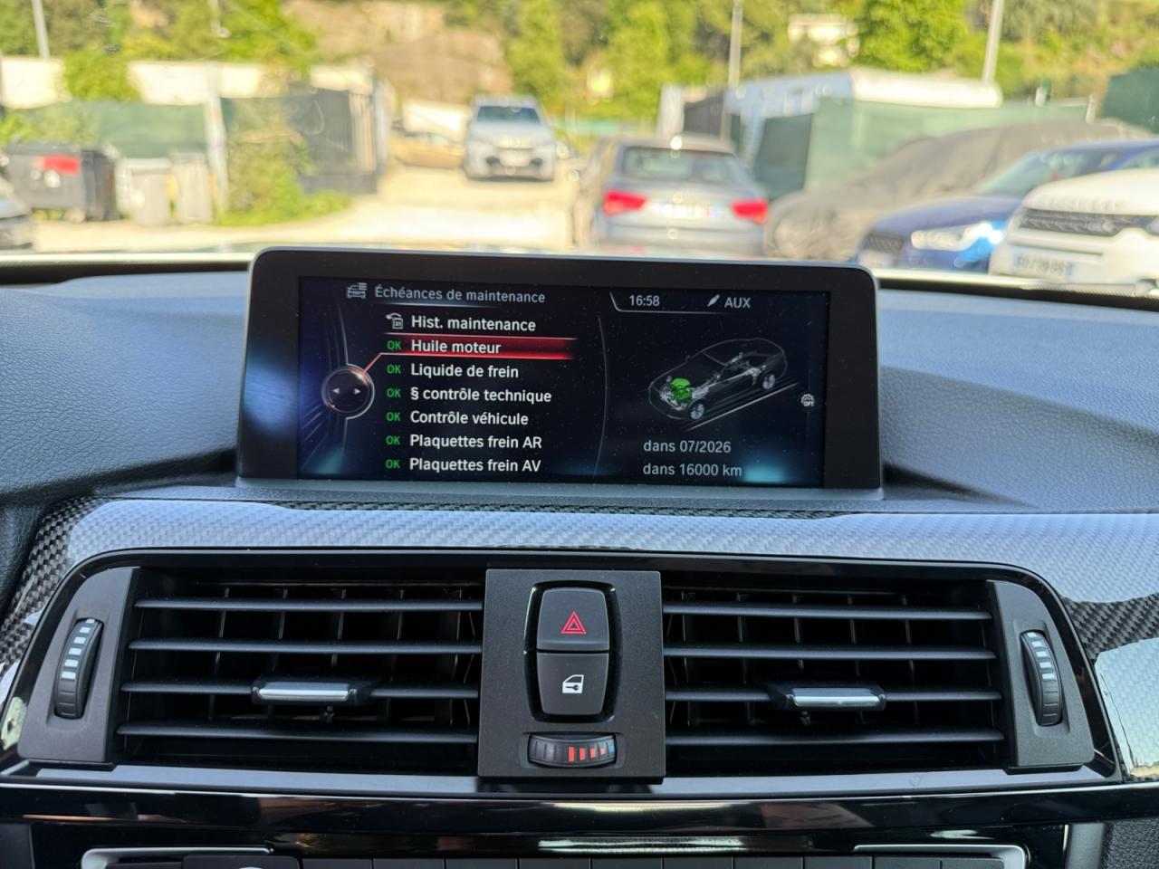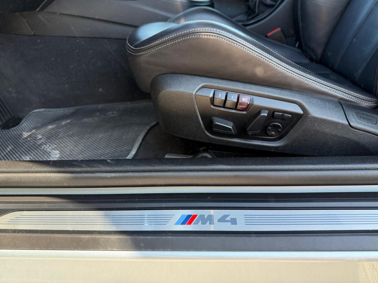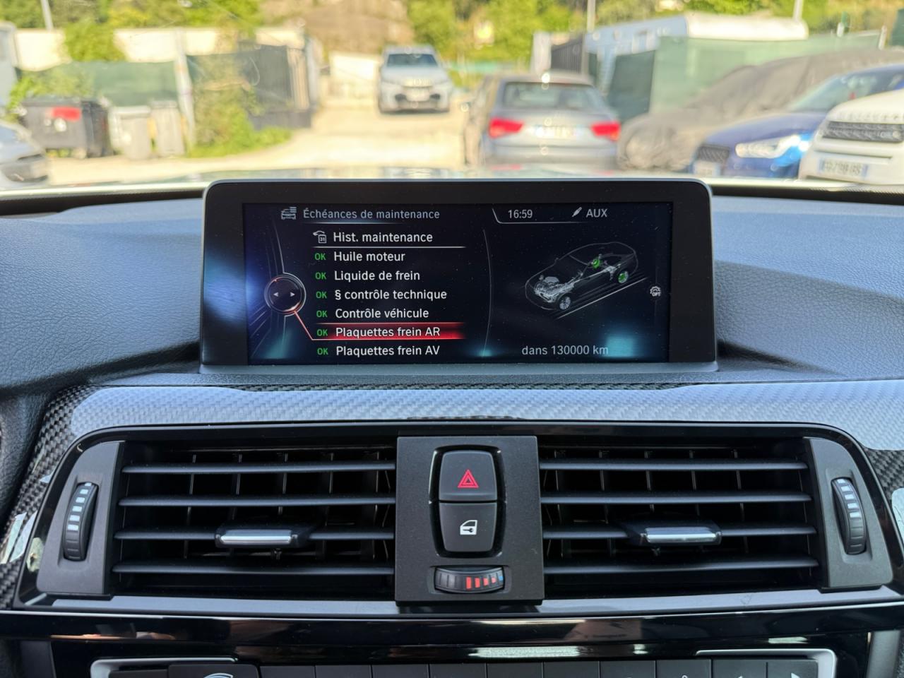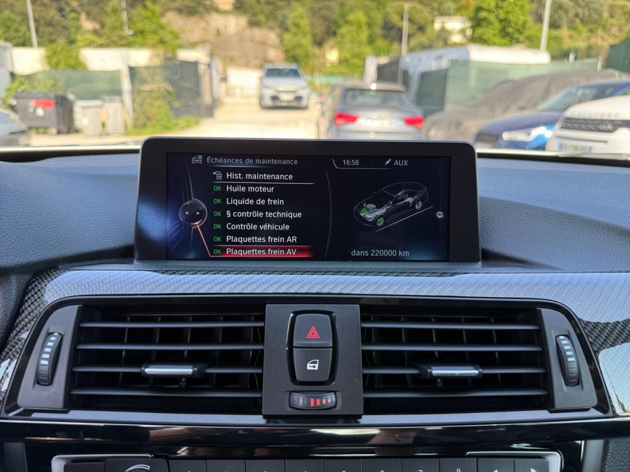 2 porte-boissons dans la console centrale avant2 prise 12V dans la console centrale avant et dans la console centrale arrièreABS (Antiblocage de roues)Accoudoir central arrièreAccoudoir central avant coulissantAffichage BMW EfficientDynamics dans le cadran d'instrumentationAffichage tête haute HUD couleur avec affichages spécifiques M et limitations de vitesseAide au démarrage en côte, pré-charge du circuit de freinage au lever de pied, séchage des disques de freins et compensation du fadingAirbags de tête avant et arrière avec voile de protection contre les débris de verreAirbags frontaux conducteur et passager (déconnectable côté passager)Airbags latéraux avantAnneaux d'arrimage dans le coffreAntenne de toit « aileron de requin »Anti-démarrage électroniqueAppel d'Urgence IntelligentAssistance au freinage d'urgenceAutoradio BMW Professional CD compatible MP3, 6 haut-parleurs, prise AUX-IN, port audio USB, double Tuner, RDS et streaming audio Bluetooth (avec "Music Search")Badge "M4" apposé au niveau du coffre à droiteBaguettes de seuils avec inscription BMW MBanquette arrière 2 places avec dossiers rabattables asymétriquement 60/40Barre anti-rapprochement en fibre de carbone sous le capot moteurBMW Service Inclusive (entretien et garantie constructeur pendant 5 ans et/ou 100 000 km)Boîte de vitesses M DKG 7 rapports à double embrayage avec DrivelogicCapteur d'impact : déverrouillage du véhicule, allumage de l'éclairage de l'habitacle et activation des feux de détresseCarrosserie légère aluminium/acierCeintures de sécurité à 3 points (tous les sièges) avec prétensionneur pyrotechnique et limiteur de tension (à l'avant)Ciel de pavillon "Anthrazit "Clés radiocommandées à mémorisation automatique des réglages "Personal Profile"Clignotants avant et arrières à LEDClimatisation automatique 3 zones avec filtre microporeux et fonction de recyclage d'airConciergerieConnectivité avancéeConstruction allégée intelligenteContours de calandre chromés, doubles barreaux verticaux noirs et logo "M4"Contrôle de freinage en courbe CBCContrôle Dynamique de la Stabilité DSC+Contrôle Dynamique de la Traction DTCDémarrage sans clé via le bouton de démarrage Start/Stop avec contour chroméDétecteur de pluie et allumage automatique des projecteursDétection de l'occupation du siège passager avantDifférentiel Actif M à commande électronique avec blocage du couple variant de 0 à 100%Direction à assistance électrique variable en fonction de la vitesseEclairage d'ambiance avec 2 couleurs au choix et éclairage d'approche dans les poignées extérieuresEclairage de bienvenue et d'accompagnement "Follow-me-home"Eclairage plafonnier soft-on/soft-off et éclairage du coffreEcran d'information central couleur 8.8" (22,4 cm) avec commande par "Controller" iDrive et 8 touches de raccourcis programmablesEcrous antivolFeux arrière avec guides de lumière à LEDFeux de stop dynamiquesFixations Isofix aux places latérales arrièreFonction d'arrêt et de redémarrage automatique du moteurFonctions "Ma BMW à distance"Freins à disques perforés hautes performances à étrier fixe peint en bleuGestionnaire M DriveIndicateur de maintenance CBS tenant compte des conditions de conduiteInformation Trafic en Temps Réel RTTIInterface Bluetooth pour téléphone portable (mains-libres)Jantes en alliage léger 18'' style 513 M à rayons en V avec monte pneumatique mixteKit de mobilité BMWKit fumeurLave-pharesLimiteur et régulateur de vitesse avec maintien de la vitesse en descenteMesure individuelle de pression des pneumatiquesMesures BMW EfficientDynamicsMiroirs de courtoisie éclairés intégrés aux pare-soleilMotorisation BMW M TwinPower TurboNavigation multimédia ProfessionalNotice d'utilisation de la voiture intégrée et carnet d'entretien électronique avec BMW Service HistoryOrdinateur de bord, Check-Control et indicateur de température extérieureOuïes latérales au traité en relief avec entourage chromé inscription "M4"Pack Advanced Full LEDPare-chocs arrière au design spécifique avec diffuseur (couleur carrosserie)Pare-chocs auto-régénérants jusqu'à 4 km/h avec éléments déformables jusqu'à 15 km/hPare-chocs avant au design spécifique avec 2 grandes prises d'airProjecteurs Advanced Full LED avec quatre anneaux lumineux blancs à technologie LED pour éclairage diurneRadars de stationnement avant et arrière PDC avec représentation graphique des obstacles sur l'écran d'information centralRepose-pied conducteur siglé "M"Rétroviseur intérieur électrochromeRétroviseurs extérieurs avec rappel de clignotantRétroviseurs extérieurs et buses de lave-glace chauffantsRétroviseurs extérieurs M couleur carrosserie à réglage électrique, asphériques, dégivrants, électrochromes et rabattables électriquementRétroviseurs extérieurs spécifiques M dans la couleur de la carrosserie, aérodynamiquement optimisésSélecteur de mode de conduite - 3 modes : "Efficient", "Sport", "Sport+"Sellerie cuir MerinoServices Après-Vente connectés BMW TeleServicesServices BMW ConnectedDriveShadow Line brillant BMW IndividualSièges avant électriques à mémoires conducteur avec soutien lombaireSièges avant Sport M intégraux avec logo "M" rétroéclairéSorties d'échappement rondes, doubles et chromées de chaque côtéSystème de récupération de l'énergie au freinageSystème Hi-Fi 9 haut-parleurs 205 WattsTableau de bord avec écran d'informations haute résolution et instrumentation spécifique M avec aiguilles rouges, zone rouge dynamique, cadrans illuminés blanc et emblème "M"Toit en PRFC et baguette de toit noiresTrain arrière multibrasTrain avant à double articulationTriangle de présignalisation avec kit de premiers secoursTroisième feu stop à LEDVerrouillage centralisé avec télécommandeVide-poches ergonomiques dans les portes avantVitrage teinté pour réduire l'échauffement dû à l'ensoleillementVitres avant et arrière électriq