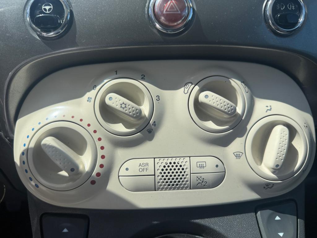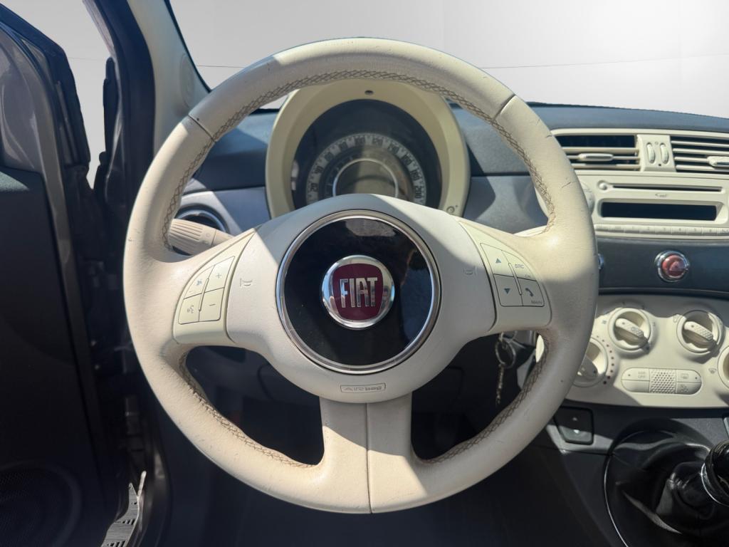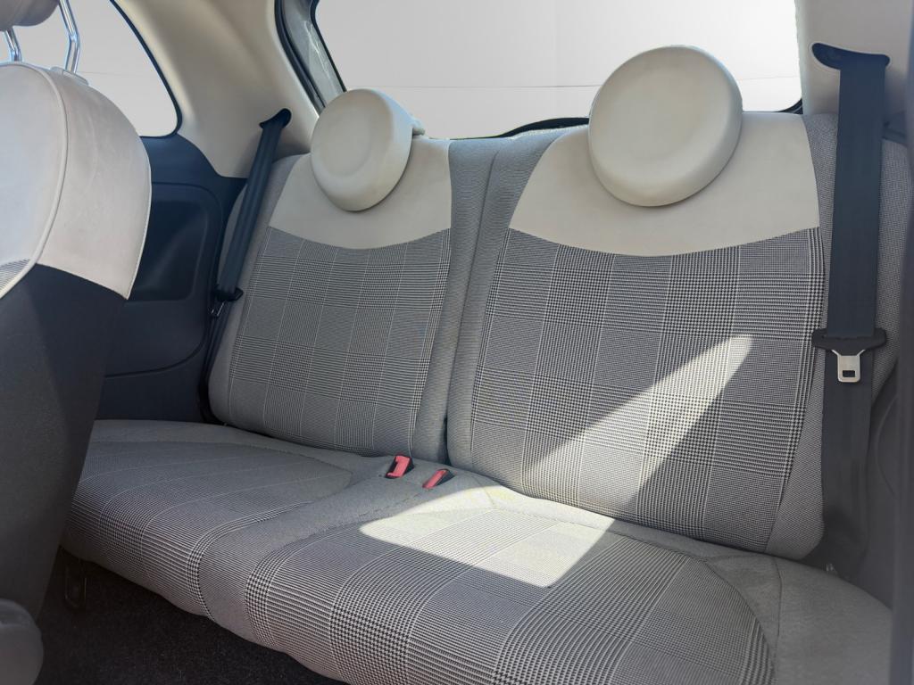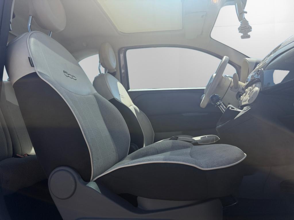 ABS – antiblocage des roues avec répartiteur de freinage EBDAir conditionné avec filtre à pollenAirbag Fiat de genouxAirbags fiat conducteur et passagerAirbags Fiat de toitAirbags latérauxAppuie-tête à l'avant, réglables en hauteurAssistance au freinage d'urgenceAttaches IsofixAutoradio CD MP3Banquette arrière rabattable 50/50 et appuie-tête arrièreBoucliers couleur carrosserieCommandes de l'autoradio au volant et volant gainé de cuirCondamnation automatique des ouvrants en roulantCondamnation centralisée à distanceDirection assistée Dualdrive avec fonction"City"Eclairage du coffreESP - contrôle électronique de stabilité avec “Hill Holder"Jantes alliage 15” LoungeKit ChromeKit fumeurLogo “500” sur la planche de bordPoignée de maintien intérieurePoignées de porte chroméesProjecteurs antibrouillardRangement sous l'assise passagerRétroviseurs électriques couleur carrosserie et indicateur de température extérieureRétroviseurs extérieurs électriques et dégivrantsRoue de secours “galette”Siège conducteur réglable en hauteurStart/Stop : Système d'extinction/allumage du moteur lors de courts arrêtsSystème Blue&Me avec fonction eco:Drive - Bluetooth pour téléphonie mains libres et connexion USB pour MP3Toit panoramique fixe avec pare-soleilVitres avant électriquesVolant réglable en hauteur