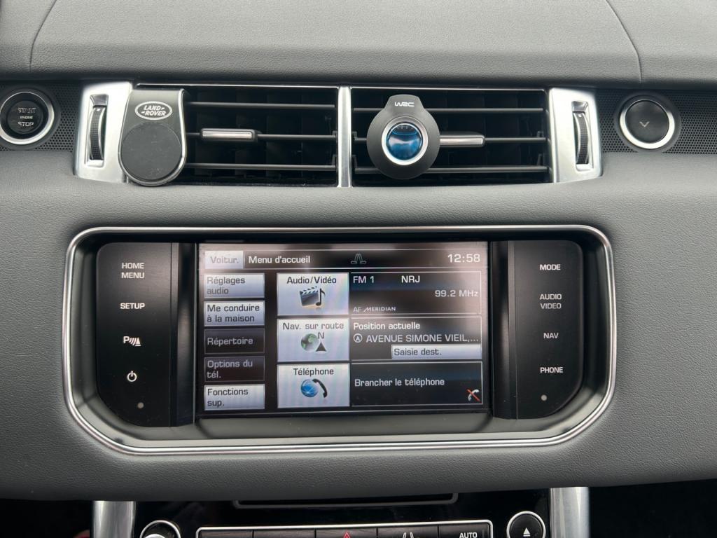 2 points d'ancrage Isofix pour sièges enfant aux places latérales6 AirbagsAccoudoir central arrièreAir conditionné à régulation automatique 2 zonesAlarme périmétriqueAllumage automatique des projecteursAnti-patinage électronique aux 4 roues (ETC)Antidémarrage moteur électronique - 7 clésAssises et dossiers des sièges en cuir Oxford perforéBanquette arrière modulable 60/40Barres des ouïes latérales et entourage Gloss BlackBoîte de transfert simple gammeBoîte de vitesses automatique à 8 rapports avec CommandShift 2Câble de connexion iPodCaméra de reculCapteur de pluieCapteur de rayonnement solaire et capteur de pollutionColonne de direction réglable électriquementCommandes de l'autoradio au volantContrôle de freinage d'urgence - EBAContrôle de freinage en courbe CBCContrôle de pression des pneus ( TPMS )Contrôle de stabilité anti-retournement - RSCContrôle dynamique de stabilité - DSCCoutures contrastantesCouvre-bagages soupleDétecteur d'obstacles arrièreDétecteurs d'obstacles avantDétrompeur de carburantEcrous antivolEntourage des projecteurs antibrouillard et coques de rétroviseurs noirsEPAS - Direction à assistance électrique asservie à la vitesseEtriers de frein rougesFermeture centralisée avec verrouillage des portesFiltre à particulesFinition Sport Textured AluminiumFrein de stationnement électronique (EPB)Freins à disques ventilés à l'arrièreFreins à disques ventilés à l'avantGrille de calandre et liseret de hayon Gloss BlackInserts pare-chocs avant et arrière noirsInterface audio iPodJantes 21" 5 branches doubles Diamond Turned Finish - Style 15Lève vitres électriques avant et arrière impulsionnelsLumière d'ambianceOrdinateur de bord avec écran central TFT couleur 5"Ouïes latérales et de capot avant avec entourage Gloss BlackOuverture et fermeture électrique du hayonPack non fumeurPalettes au volantPare-brise chauffantPare-brise feuilleté et acoustiquePare-soleil simple avec éclairage de courtoisiePavillon Morzine Cirrus ou IvoryPédalier finition MetalPeinture verniePhares Xénon avec signature LED - Lave pharesProjecteurs antibrouillardRégulateur de vitesseRépartiteur électronique de freinage (EBD)Rétroviseur intérieur électrochromeRétroviseurs extérieurs rabattables électriquement chauffants, avec lampes d'approcheRoue de secours temporaireSeuils de portes chromés avec marquage Range RoverSièges - Style 2SubwooferSystème Adaptive Dynamics (suspension active)Système anti-blocage des freins (ABS)Système audio Range Rover 8 HP - 250 W - Prise auxiliaire & 1 port USBSystème Bluetooth d'intégration du téléphone personnelSystème d'arrêt / démarrage intelligentSystème de contrôle de la descente (HDC)Système de Navigation Premium avec Ecran tactileTerrain ResponseToit couleur carrosserieVannes activesVitesse de pointe augmentéeVitres avant feuilletéesVolant cuir bi-tonVolant Cuir multifonctionsVolant gainé cuir