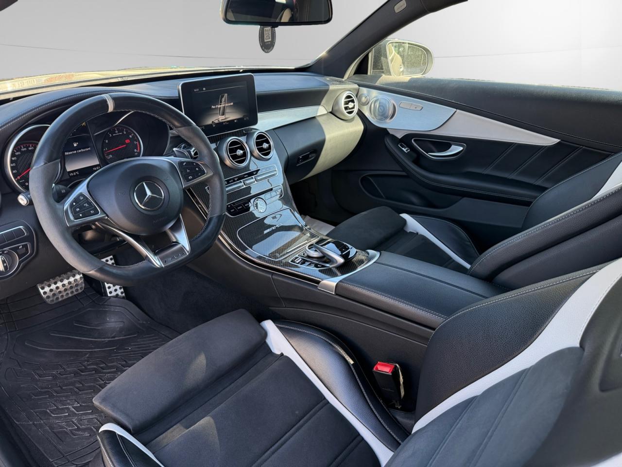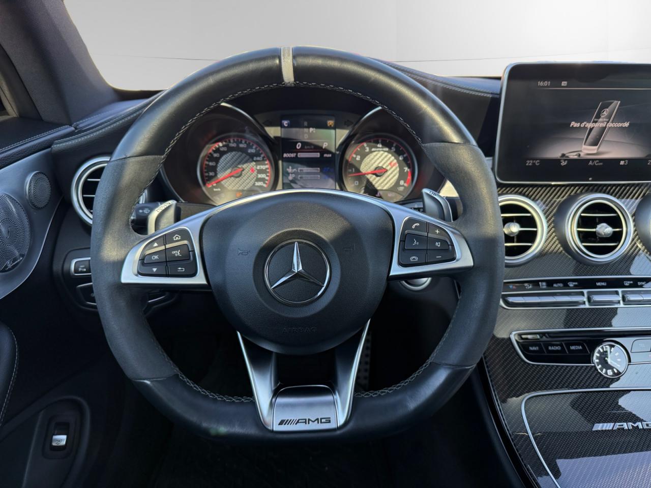 ABS (antiblocage de roues) et BAS (freinage d'urgence assisté)Accoudoir central avant avec vide-pochesADAPTIVE BRAKE avec fonction HOLD et aide au démarrage en côteAirbag genoux conducteurAirbags de tête avant/arrièreAirbags frontaux à 2 seuils de déclenchementAirbags latéraux avantAllumage automatique des projecteursAntivol à clé électronique avec système de verrouillage ELCODEAPA (Aide au Parking Active) : système d'aide au stationnement avec radars de proximité avant/arrière et caméra de reculAssistant feux de route PlusAttention Assist : système de détection de somnolenceBaguettes de seuil avec monogramme "AMG"Banquette arrière rabattable 40/20/40 avec accoudoir centralBoîte à gants éclairéeBoîte de vitesses sport automatique à 7 rapports SPEEDSHIFT MCT AMG avec fonction Race StartCaméra de reculCapot moteur actif pour la protection des piétonsCapot moteur AMG spécifique avec bossagesCapteur de pluieCeintures de sécurité 3 points avec rétracteur et limiteur d'effort x4Ceintures de sécurité designo de couleur ArgentCiel de pavillon en tissu noirClé électronique AMG avec emblème AMGClignotants à commande confort par impulsionsClimatisation automatique THERMATIC à 2 zonesCOLLISION PREVENTION ASSIST : système d'avertissement des risques de collisionCOMAND OnlineCombiné d'instruments AMG spécifiqueConnexion Bluetooth pour téléphone portableContrôle de pression des pneus ( TPMS )Couvercle de coffre avec insert chroméDétecteur d'angle mort actifDétecteur d'occupation du siège passager avantDétection automatique de siège enfant intégré dans le siège passager avantDéverrouillage du coffre à distanceDifférentiel autobloquant AMG sur l'essieu arrière (électronique)Direction paramétrique sport AMGDYNAMIC SELECT AMG : 5 modes de conduite au choix (Eco, Confort, Sport, Sport Plus et Individuel)ESP AMG avec 3 modes de réglage (On, Sport et Off)Etriers de freins peints dans le ton rougeFeux arrière intégralement à LEDFeux de stop adaptatifsFilet dans le coffre à bagages avec deux crochetsFonction d'arrêt/redémarrage "Stop/Start ECO" avec commutateur de désactivation manuelleFrein de parking électriqueGarnitures intérieures en cuir NappaGrille de calandre avec barre horizontale argent iridium et logo AMG intégréIndicateur de température extérieurIndicateur dynamique de maintenance (ASSYST PLUS)Inserts décoratifs en aluminium clair et en laque noireIntelligent Light System (ILS) à LED : Projecteurs hautes performances à technologie LED avec répartition variable de l'éclairage, éclairage actif dans les virages et correcteur dynamique de portéeInterface média USB dans l'accoudoir central avant (2 ports USB)ISOFIX : fixations des sièges-enfants arrière (places extérieures)Jantes alliage AMG 48 cm (19") à 5 branches doubles avec pneus AV 245/35 R19 et AR 265/35 R19Jupe arrière, baguette arrière et protections de bas caisse AMG finition argent iridium matJupe avant AMG avec splitter finition noir brillant et baguette avant finition argent iridium matKit anti-crevaison TIREFITKit carrosserie AMG spécifiqueLève-vitres électrique (x4) à commande séquentielle et dispositif anti-pincementMercedes-Benz Connect meMonogramme S AMG sur le couvercle de coffreOrdinateur de bordPack d'éclairage intérieurPare-chocs et rétroviseurs extérieurs couleur carrosseriePare-soleil avec miroirs de courtoisie éclairésPédalier sport en acier inoxydable brossé avec picots en caoutchoucPoignées de portes couleur carrosseriePrise d'air avec grille à losangesRétroviseurs extérieurs électriques, chauffants et asphériques, avec rappels de clignotants intégrésRétroviseurs intérieur et extérieur gauche jour/nuit automatiques et rétroviseurs extérieurs rabattables électriquementSécurité enfant avec verrouillage manuel des portes arrière et électrique des vitres arrièreSièges avant chauffantsSièges avant sport AMG avec maintien latéral optimisé et plaquette AMGSièges conducteur et passager avant tout électriques avec fonction Mémoires incluant la colonne de direction et les rétroviseurs extérieursSystème d'échappement sport AMG avec deux doubles sorties chroméesSystème de freinage composite hautes performances AMG (disques AV 390x36 mm et AR 360x26 mm)Tableau de bord recouvert de similicuir ARTICO noirTapis de sol noirs avec monogramme AMGTEMPOMAT (régulateur de vitesse) et SPEEDTRONIC (limiteur de vitesse)Toit ouvrant panoramique électrique en verreTrain de roulement sport RIDE CONTROL AMG avec réglage adaptatifVerrouillage centralisé à télécommande avec fonction de verrouillage automatiqueVolant performance AMG à 3 branches en cuir Nappa/microfibre Dinamica