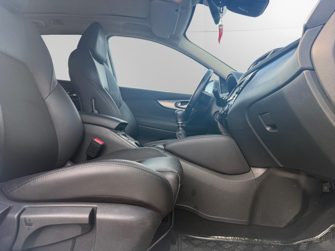 ABS (Antiblocage de roues)Accoudoir central arrièreAccoudoir central avantAide au stationnement avant/arrièreAirbag passager déconnectableAirbags frontaux, latéraux AV, rideauxAlarme périmétriqueAllumage automatique des projecteursBanquette arrière rabattable 40/60Bas de caisse couleur carrosserie avec finition argentBouclier avant et arrière couleur carrosserieCeintures de sécurité arrière 3 points avec enrouleurCeintures de sécurité avant 3 points avec prétensionneur et limiteur d'effortCiel de toit noirClimatisation automatique bi-zoneCommandes au volant (audio, Bluetooth, régulateur et limiteur de vitesse, contrôle de l'ordinateur de bord)Contour des vitres latérales chroméContrôle de pression des pneus ( TPMS )Direction assistée électrique ajustable (mode Sport ou Normal)Drive AssistEclairage d'ambiance intérieurESP (Correcteur électronique de trajectoire)Essuie-glace à déclenchement automatiqueFermeture et ouverture centralisées des portes à distanceFeux arrière avec signature LED et effet 3DFeux de routes LED directionnelsFeux diurnes à LED avec signature lumineuseFeux diurnes LED avec clignotants intégrésFonction Autohold (aide au stationnement/démarrage)Frein de parking électriqueInserts de porte et planche de bord en argent mat 3DJantes alliage 19" WINDKit de réparation pneumatiqueLève vitres électriques avant et arrière impulsionnelsNBAS (Amplificateur de freinage d'urgence)Nissan AVM - Vision 360°Ordinateur de bord avec écran TFT couleur 5"Ouverture et fermeture à distance des vitresPack DesignPack NissanConnectPack SécuritéPack Sécurité PlusPare-brise chauffantPare-soleil côté conducteur et passager avec miroir de courtoisie éclairéPeinture métallisée hors Blanc Lunaire et Bleu TopazePlancher de coffre modulablePoignées de portes couleur carrosseriePoignées ouverture de portes intérieures chroméesPoints d'ancrage de siège enfant ISOFIX à l'arrière (x2)Port USB arrièrePort USB avantPorte gobelet avant x2Porte-gobelets arrière (x2)Prise 12V dans l'accoudoir central avantPrise auxiliaire Jack 3.5" dans accoudoir central avantProjecteurs antibrouillardRadio Numérique DABRéglages lombaires électrique côté conducteurRégulateur et limiteur de vitesseRépartiteur électronique de freinage (EBD)Rétroviseurs extérieurs à mémoire indexés à la marche arrièreRétroviseurs extérieurs avec indicateurs de changement de direction à LEDRétroviseurs extérieurs finition argentRétroviseurs extérieurs rabattables automatiquementRétroviseurs extérieurs réglables électriquement et dégivrantsSellerie en cuir Nappa - noire ou pruneSiège conducteur avec réglage en hauteurSiège passager avec réglage lombaireSiège passager réglable en hauteurSièges AV électriques à mémoires côté conducteurSièges avant "monoform style"Sièges avant chauffantsSystème "Chassis Control"Système anti-démarrageSystème audio Premium BOSE, 8 haut-parleurs (dont 2 caissons de basse), amplificateur digitalSystème audio radio avec écran tactile 7" avec interface personnalisable, Apple CarPlay, Android Auto, commandes vocalesSystème d'ouverture et de démarrage sans clé "Intelligent Key"Système mains libres BluetoothSystème Stop & StartVolant et levier de vitesse gainés cuirVolant réglable en hauteur et en profondeur