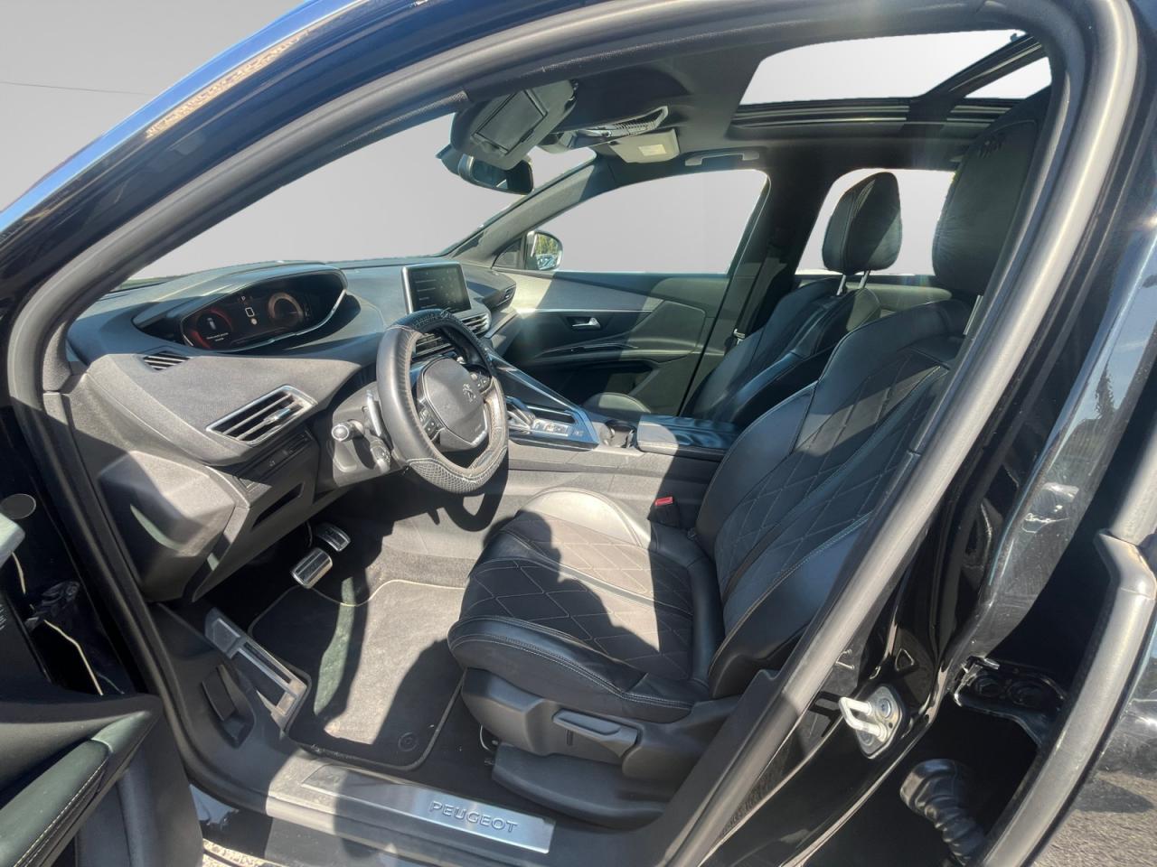 2 spots de lecture à l'arrière4 poignées de maintien rétractables (passagers avant et arrière) et 2 crochets portemanteau à l'arrièreABS avec répartiteur électronique de freinage (REF) et aide au freinage d'urgence (AFU)Accès et démarrage mains-libresAccoudoir central avant à ouverture papillon, avec compartiment de rangement éclairé et réfrigérableAide graphique et sonore au stationnement arrièreAir conditionné automatique bi-zone avec aérateurs aux places arrièreAirbags frontaux conducteur et passager adaptatifsAirbags latéraux conducteur et passager avantAirbags rideaux de tête aux places avant et arrièreAlerte de temps de conduiteAppuis-tête à sécurité optimisée réglables en hauteur sur les sièges conducteur et passager avant ainsi que sur les places arrièresBandeau de pare-choc arrière chroméBanquette rabattable 1/3 - 2/3 (modularité 'Magic Flat' et commandes dans le coffre) avec accoudoir et trappe à skisBarres de seuils de portes avant en inoxBarres de toit longitudinales profilées en aluminiumBoîte à gants floquée et éclairéeBoîtiers de rétroviseurs extérieurs chromésCalandre avec jonc périphérique chrome brillant et satiné, damier chromé et lettrage Peugeot noirCanules d'échappement chroméesCeintures avant à 3 points, réglables en hauteur, avec prétensionneurs et limiteurs d'effortCeintures de sécurité arrière trois points à enrouleur (x3), avec prétensionneurs et limiteurs d'effort aux places latéralesCommande de verrouillage à distance (deux plips)Contrôle dynamique de stabilité CDS avec antipatinage électronique ASRDécors de planche de bord et panneaux de portes 'Grey Oak' (bois véritable chêne gris)Décors intérieurs (baguettes de planche de bord et panneaux de portes, enjoliveur de console, 'Toggle Switches') chrome acierDétection de sous-gonflage indirecteDeux porte-gobelets intégrés à la console centraleDirection assistée électrique, avec colonne de direction réglable en hauteur et profondeur (mécanique)Eclairage intérieur à LEDEcrous antivolEnjoliveurs d'arc de pavillon en inoxEnjoliveurs en inox sur les protecteurs de bas de portesEssuie-glace arrière avec déclenchement automatique en marche arrièreEssuie-vitre avant avec système de lavage 'Magic Wash'Filets aumônières au dos des sièges avantFixations pour trois sièges enfants suivant norme ISOFIX aux places passager avant et latérales arrièreFonction Mirror ScreenFrein de stationnement électrique avec aide au démarrage en penteHabitacle et ciel de pavillon Noir MistralHayon mains libres : volet de coffre motorisé avec accès mains libresIndicateur de rapportInserts d'ailes avant chromésJantes alliage 19" 'Boston' bi-ton diamantées et vernis matJoncs de vitres latérales en inoxKit de dépannage pneumatiqueLève-vitres électriques avant et arrière, séquentiels et antipincementLunette arrière chauffante avec antennes sérigraphiéesMiroirs de courtoisie éclairésPack City 1Pack Eclairage d'ambiancePack Safety PlusPack VisibilitéPassages de roues rapportés noirs élargisPédalier et repose-pied conducteur en aluminiumPeugeot ConnectPeugeot i-Cockpit Amplify: choix de 2 ambiances paramétrablesPeugeot i-Cockpit combiné tête haute numérique reconfigurable, écran tactile capacitif 8" et volant compact multi-fonctionsPlafonnier avant avec spots de lecture (x2) et plafonnier arrière à extinction temporiséePlanche de bord surpiquéePlancher de coffre deux positionsPneus 235/50 R19 VPrise USBPrises 12V (x 3)Projecteurs 'Peugeot Full LED Technology'Radio 6 HP, bi-tuner compatible MP3 et connectivité Bluetooth (audio streaming, kit mains libres), avec commandes au volant, écran tactile capacitif 8"Reconnaissance des panneaux de vitesse et préconisationRégulateur et limiteur de vitesseRétroviseurs extérieur électriques et dégivrantsRétroviseurs extérieurs rabattables électriquement avec 'Lion Spotlight'Sabot de pare-choc avant gris métalliséSellerie TEP & AlcantaraSiège conducteur à réglage lombaireSiège conducteur réglage en hauteurSiège passager à réglage manuel en hauteurSiège passager avant avec mise en tabletteSurtapis aux places avant et arrièreTeinte de caisse Gris HurricaneToggle Switches' chromés (touches 'piano' d'activation des fonctions de l'écran tactile)Toit 'Black Diamond' (toit Noir Perla Nera)Verrouillage automatique de tous les ouvrants en roulantVitres électriques AR avec sécurité enfantVitres latérales et lunette arrière surteintéesVolant cuir pleine fleur perforé avec bagues chrome acier et badge GT