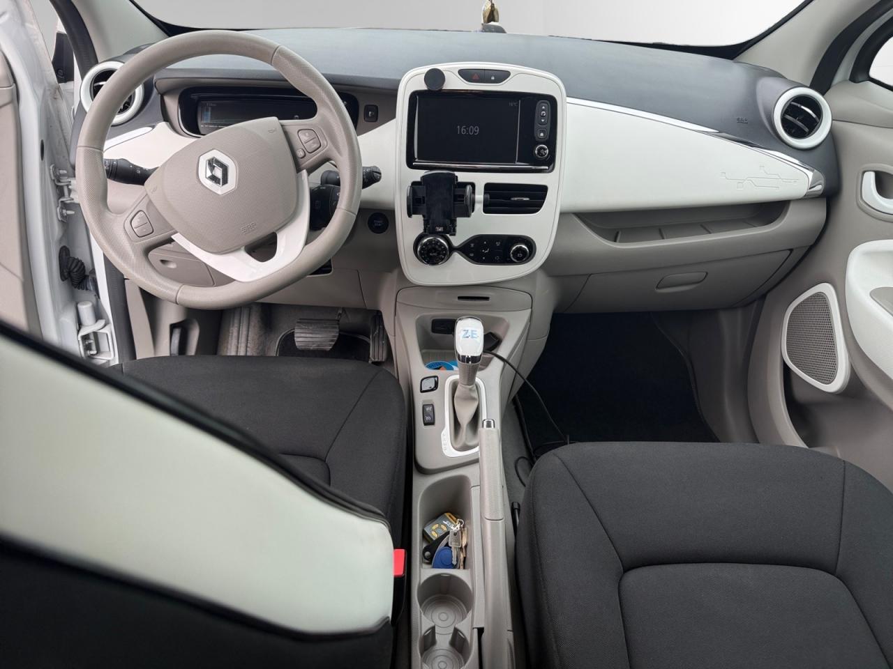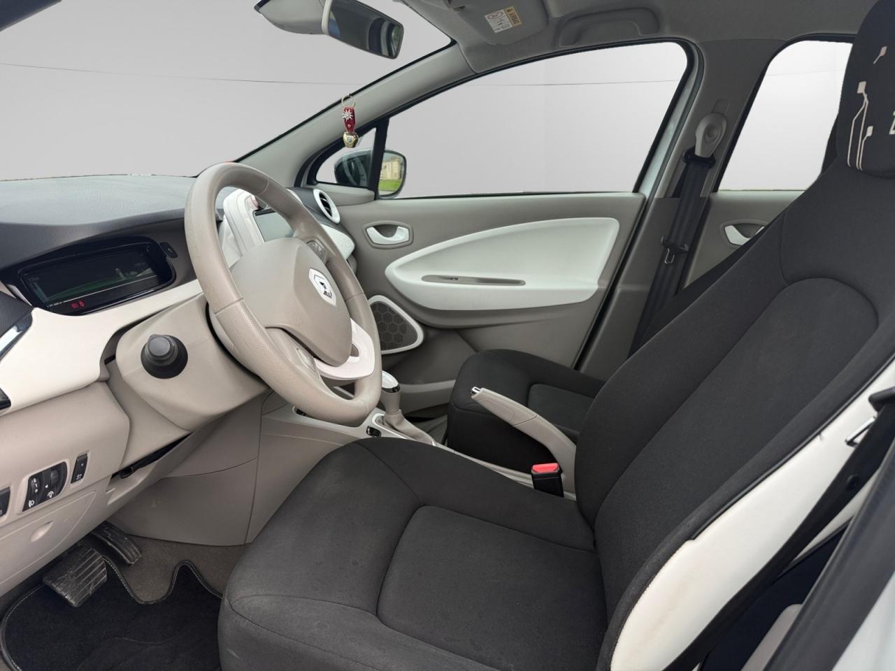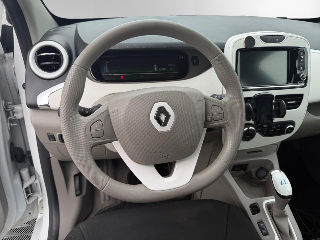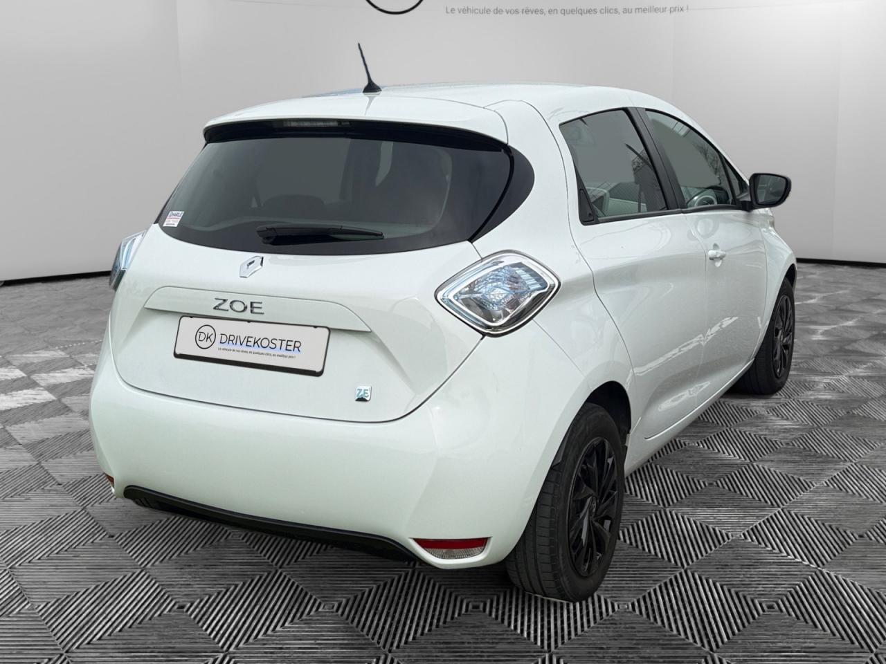 2 appuie-têtes arrière latéraux réglables en hauteurABS avec aide au freinage d'urgenceAide au démarrage en côteAirbags frontaux et latéraux conducteur et passager déconnectablesAllumage automatique des feux de détresseBoîte à gants (7 l)Câble de recharge (6,5m) pour Wall-box et borne publique avec sac Z.E.Câble de recharge Flexi Charger (6,5 m) pour prise Green Up Access et prises domestiquesCarte Renault à télécommandeChargeur Caméléon pour une recharge entre 30 minutes et 9 heures avec un chargeur uniqueClimatisation automatique régulée mono-zone avec éco modeCondamnation automatique des ouvrants en roulantConsole centrale avant avec rangementsContrôle dynamique de conduite ESC avec fonction antipatinage ASR et contrôle de sous-virage CSVEconomètre, jauge batterie et compteur kilométrique intégrés au tableau de bordEcran couleur TFT avec ordinateur de bord et indicateur de style de conduiteEnjoliveur 16" Flexwheel OzediaFeux de jour à LEDJoncs de calandre ChromeKit gonflage de réparationLève-vitres électriques avantMy Z.E Inter@ctiveMy Z.E. Connect : information à distance en temps réel de l'état de charge de la batteriePack CityPack Renault R-LinkPackage Renault Take CarePneumatique 16" Michelin Energy E-VPoches aumônières au dos du siège passagerPoignées de portes avant couleur carrosseriePréconditionnement de l'habitacle (chauffage ou climatisation)Programme Eco-modeProjecteurs optique bi-halogèneRange OptimiZEr (Optimiseur d'autonomie)Rangement bouteille 1,5 l dans portes avantRégulateur et limiteur de vitesseRépartiteur électronique de freinage (EBD)Rétroviseurs extérieurs électriques et dégivrantsRétroviseurs extérieurs noirs brillantsSécurité enfant manuelleSellerie tissu gris tropique clair avec traitement TeflonSignature Z.E. : logos Renault en chrome bleuté et badge Z.E. à l'arrièreSon auditorium « 3D sound by Arkamys », double antenne, 2 HP boomer, 2 HP arrière bicônes et 2 tweetersSon de prévention piéton Z.E. VoiceSystème de fixations « Isofix » aux places latérales arrière et passager avantSystème de surveillance de pression des pneusVitres bleues arrière surteintéesVolant et pommeau de levier de vitesse gainés de cuirVolant réglable en hauteur et en profondeur