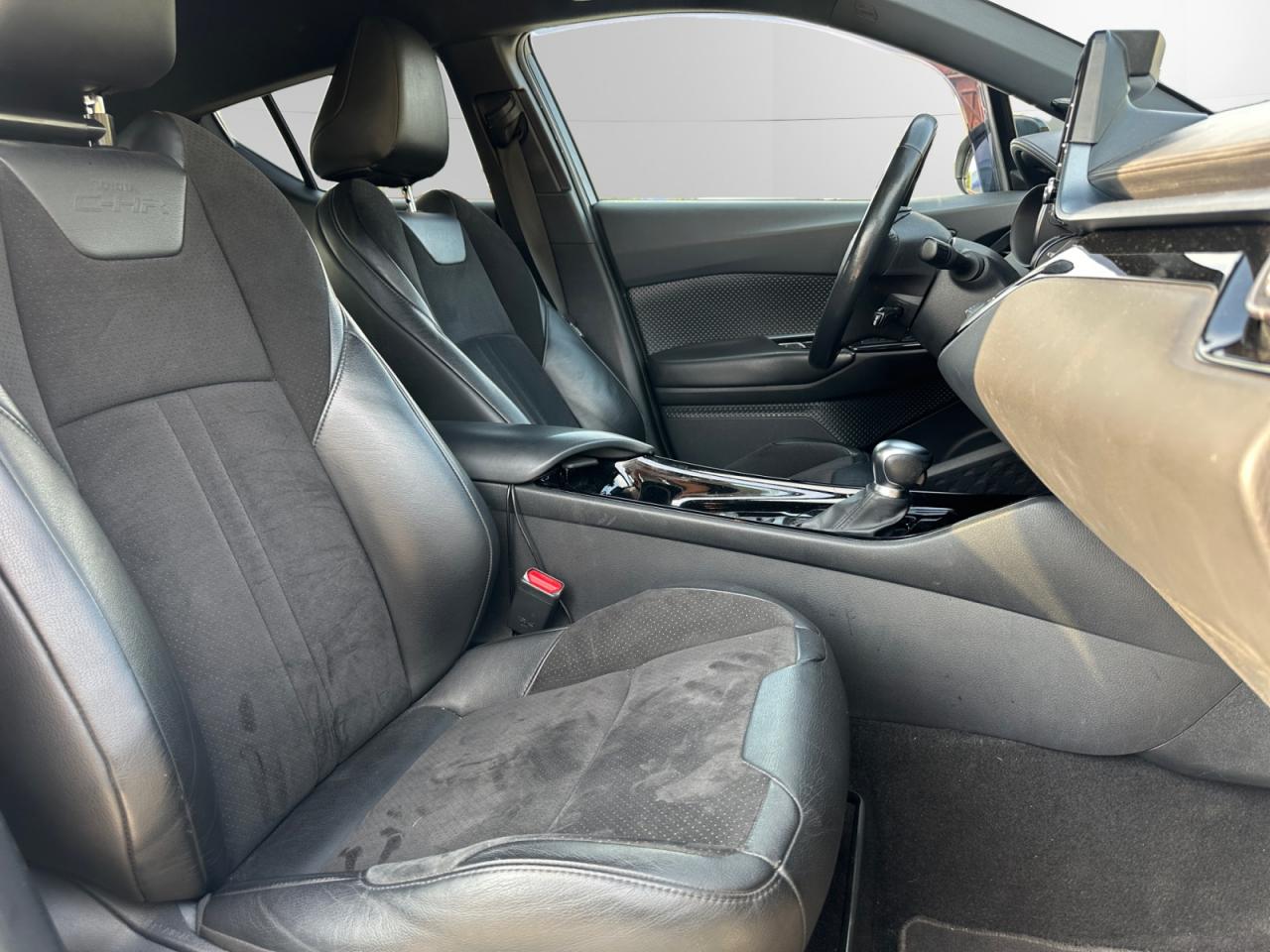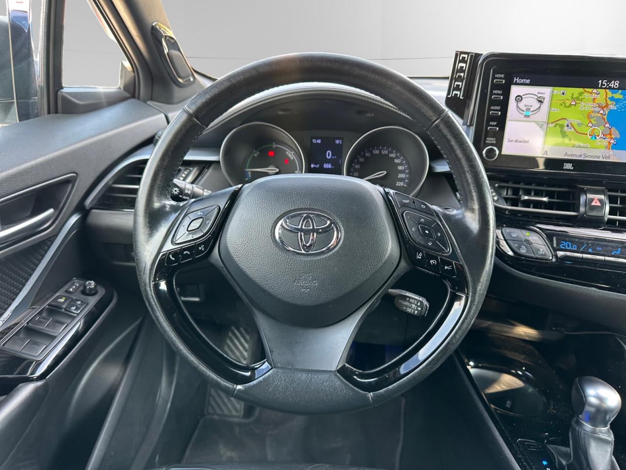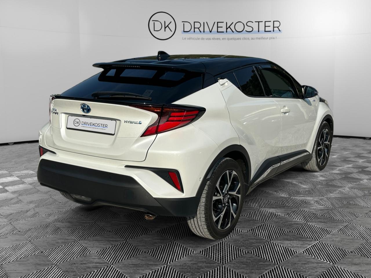 7 Airbags «frontaux» et «latéraux» conducteur et passager AV, «rideaux» passager AV et AR, «genoux» côté conducteurAccoudoir avant avec compartiment de rangementAirbag passager déconnectableAlarme avec système antidémarrageAllumage automatique des projecteursAntenne de toit « aileron de requin »Appel d'urgence - EcallAssistance au démarrage en côteAvertisseur de circulation arrière avec freinage d'urgence automatiqueBecquet avant couleur carrosserieCalculateur de temps de conduite électriqueCaméra de reculCarrosserie bi-ton métallisée ou nacrée/toit noirCiel de pavillon noirClimatisation automatique bi-zoneConnexion smartphone (Apple CarPlay et Android Auto)Coques de rétroviseurs noiresDétecteur d'angle mortDirection assistée électrique (EPS)Eclairage d'accueilEcrous antivolEssuie-glace à déclenchement automatiqueFermeture centralisée avec commande à distanceFeu de recul central à LED sur bouclier arrièreFeux arrière à LED, avec clignotants séquentielsFeux de jour à LEDFilet de coffreFrein de stationnement électriqueIndicateur de perte de pression des pneusJantes alliage 18” CatocaKit de réparation anti-crevaisonKit de sécuritéLignes de vitres latérales chroméesLimiteur de vitesseMontant central noir laquéOrdinateur de bord avec écran couleur TFT 4.2” multifonctionOrnements de console centrale et de portières gris célestinePack ChromePoches aumônières au dos des sièges avantPoignées de portes et pare-choc avant couleur carrosserieProjecteurs adaptatifs avec ajustement automatique de la hauteur des pharesProjecteurs antibrouillard, clignotants et feux arrière à LEDProjecteurs avant à LED avec signature lumineuse premiumRadars de stationnement anticollision (ICS) arrière / avantRéglage manuel du siège passager en hauteurRépartiteur électronique de freinage (EBD)Rétroviseur intérieur anti-éblouissementRétroviseurs extérieurs avec projection au sol du logo Toyota C-HRRétroviseurs extérieurs électriques et dégivrants avec rappels de clignotantsRétroviseurs extérieurs rabattables automatiquementRevêtement supérieur de la planche de bord et de l’accoudoir central noirSellerie cuir et Alcantara noir avec embossage Toyota C-HRServices connectés MyTSiège conducteur à réglages électriques avec réglage lombaire électriqueSièges avant chauffantsSièges avant type sport avec maintiens latérauxSystème audio JBL Premium 9 HPSystème d'amplification de freinage d'urgence (BA)Système d'ouverture / fermeture côté conducteur, passager avant et coffre et démarrage sans clé “Smart Entry & Start”Système d’aide au stationnement intelligent (S-IPA)Système d’avertissement acoustique d’approche du véhicule (AVAS)Système de contrôle de motricité (TRC) et de stabilité (VSC)Système de fixation ISOFIX aux places arrière latéralesSystème de freinage antiblocage (ABS)Système multimédia Toyota Touch avec radio DAB, écran couleur tactile 8” multifonction, système de téléphonie Bluetooth et connectique auxiliaire/USBTapis de sol avant et arrière en veloursToyota Safety Sense 2Toyota Touch & Go Plus 2Vitres électriques avant et arrière avec descente et remontée à impulsionVitres latérales et lunette arrière surteintéesVolant chauffantVolant gainé cuir, multifonction réglable manuellement en hauteur et en profondeur