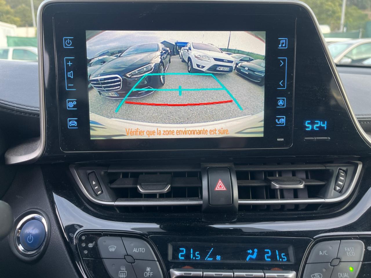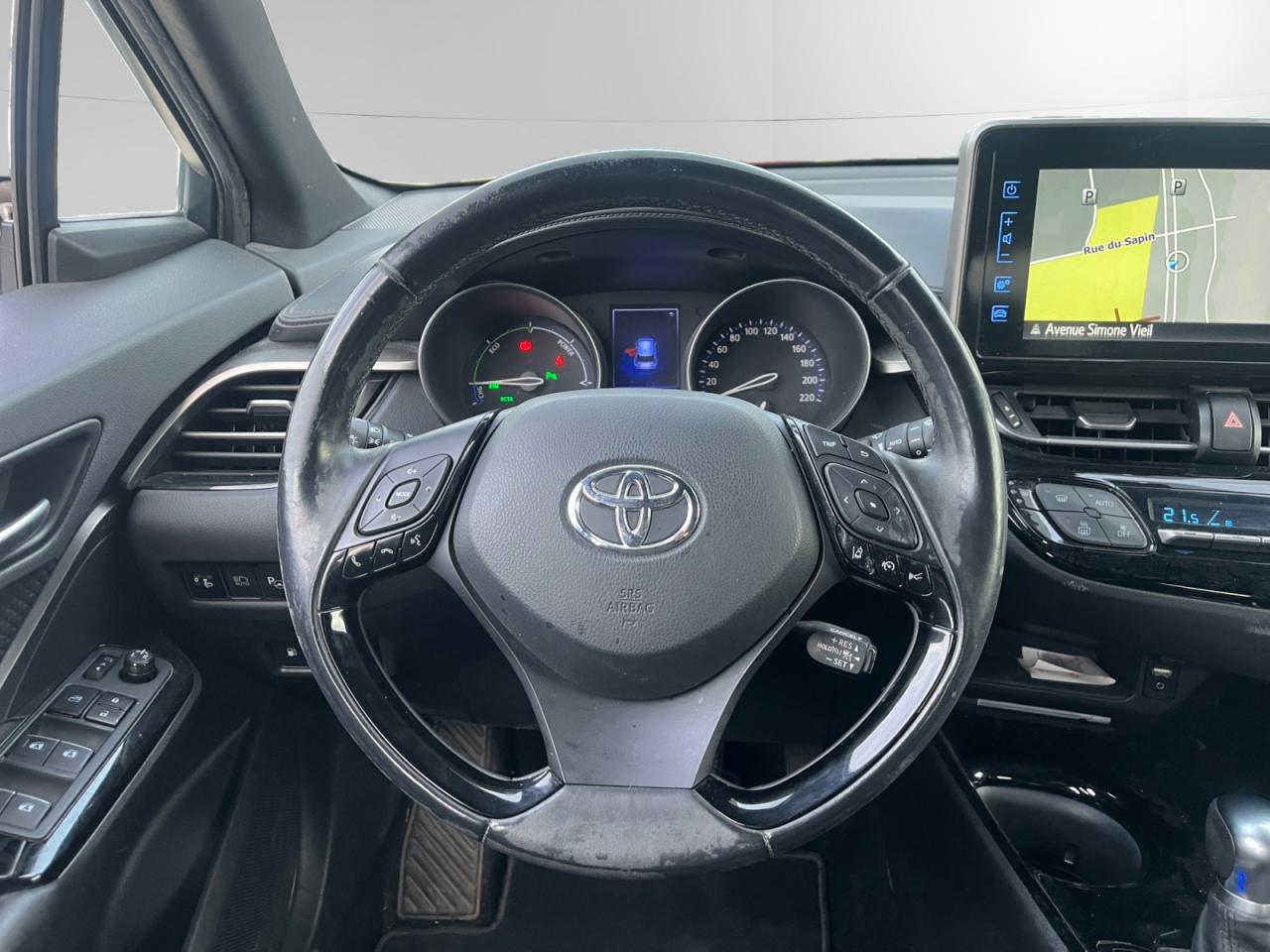 7 Airbags «frontaux» et «latéraux» conducteur et passager AV, «rideaux» passager AV et AR, «genoux» côté conducteurAllumage automatique des projecteursAntenne de toit « aileron de requin »Assistance au démarrage en côteAvertisseur de circulation arrièreCapteur de pluieCarrosserie bi-ton toit noirClimatisation automatique bi-zoneConsole centrale noir laquéeContre-portes avec inserts noirs laquésDéconnexion de l'airbag passagerDémarrage sans clé (Smart Start)Détecteur d'angle mortDirection assistée électrique (EPS)Eclairage dans les contre-portesEcran tactile 8” avec système multimédia Toyota Touch 2Feux de jour à LEDFonction Follow-Me-Home (extinction différée des phares)Indicateur de perte de pression des pneusJantes alliage 18” GraphicKit de réparation anti-crevaisonLignes de vitres latérales chroméesLimiteur de vitesseMontant central noir laquéOrdinateur de bord avec écran couleur TFT 4.2” multifonctionOrnements intérieurs bleusPoches aumônières au dos des sièges avantProjecteurs antibrouillardProjecteurs halogènesRadars de stationnement avant et arrière intelligentRétroviseur intérieur anti-éblouissementRétroviseurs extérieurs chauffantsRétroviseurs rabattables automatiquement avec projection au sol du logo Toyota C-HRSellerie en tissu noir et bleuSiège conducteur à réglage lombaire électriqueSiège conducteur réglable manuellementSièges avant chauffantsSièges avant type sport avec maintiens latérauxSystème d'amplification de freinage d'urgence (BA)Système d’ouverture/fermeture sans clé “Smart Entry”Système de contrôle de motricité (TRC) et de stabilité (VSC)Système de fixation ISOFIX aux places arrière latéralesSystème de freinage antiblocage (ABS)Toyota Safety SenseVitres arrières surteintéesVitres avant et arrière électriquesVolant cuir