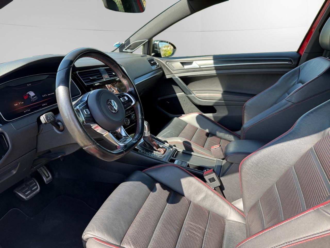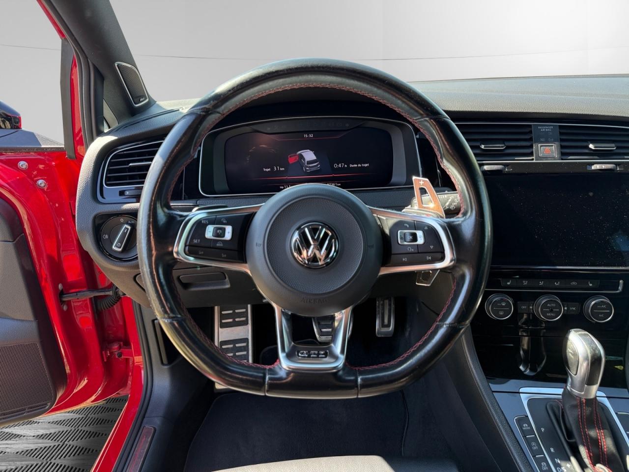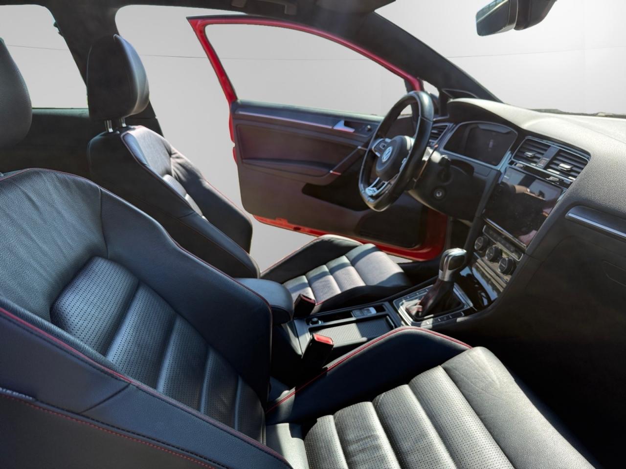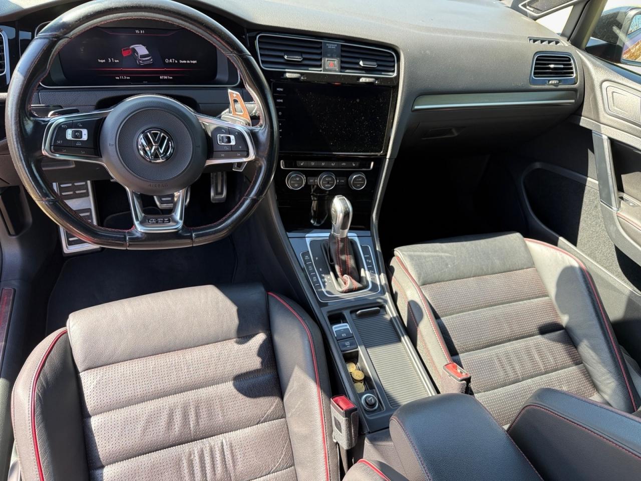 3 appuie-tête arrière + ceintures de sécurité arrière 3 pointsAbonnement aux Services Mobiles en ligne Car-Net ‘Guide & Inform' 36 moisAccoudoir central avant réglable avec compartiment de rangement, deux porte-gobelets intégrés et deux bouches d'aération derrière l'accoudoir pour les passagers arrièreActive Info Display : combiné d'instruments entièrement digital haute résolution couleurAide au stationnement avant et arrière avec signaux sonores et visualisation de la distance des obstacles sur l'écran de la radioAirbag genoux conducteurAirbags frontaux conducteur et passager (déconnectable côté passager)Airbags latéraux avantAirbags rideaux avant et arrièreAlerte de perte de pression des pneusAntenne arrière de toit intégréeAnti-démarrage électroniqueApplication Volkswagen Media ControlApplications décoratives “Honeycombed Black” pour tableau de bord côté passager avant ainsi que pour revêtements de portesApplications décoratives “piano noir laqué” pour tableau de bord côté conducteur ainsi que pour console centraleAppuis-tête à sécurité optimisée réglables en hauteur sur les sièges conducteur et passager avantAumônière au dos des sièges conducteur et passager avantAvertisseur sonore 2 tons et témoin d'oubli du port de la ceinture de sécurité à l'avantBanquette arrière rabattable 2/3 - 1/3 avec accoudoir central et trappe à skisBlocage de différentiel d'essieu avant ‘VAQ'Boîte à gants réfrigéréeBoutons d'allumage des phares avec filet chroméBoutons de lève-glace et de réglage de rétroviseurs avec filet chroméCache-bagages amovibleCaméra de recul avec visualisation de la zone située à l'arrière du véhicule sur l'écran de la radio ou de la radionavigationCar-Net "App-Connect"Catadioptre dans la partie inférieure des portièresCeintures de sécurité avant trois points à enrouleur, réglables en hauteur, avec prétentionneursCerclage chromé des instruments de bord et des aérateursCiel de pavillon noirClimatisation automatique ‘Climatronic’ bi-zone avec filtre antiallergène, réglable séparément pour le conducteur et le passager avantCompartiment de rangement au centre des deux siègesCompartiment de rangement dans le coffreConsole de pavillon avec 1 compartiment de rangement ferméCorrecteur électronique de trajectoire ESP, amplificateur de freinage d'urgence, système d'antiblocage des roues ABS, blocage électronique de différentiel EDS, répartiteur électronique de freinage EBV, antipatinage électronique ASR , r&eacutDétection piétonDirection électromécanique à assistance variable en fonction de la vitesseDirection progressiveDispositif de fixation pour deux sièges enfants suivant norme ISOFIX aux places extérieures arrièreDisques de frein 17” à l'avant et à l'arrièreDisques de frein ventilés à l'arrièreEasy Entry: facilité d'accès aux places arrièreEtriers de frein rouge à l'avant et à l'arrièreFatigue Detection : Système de détection de fatigue du conducteurFeux arrière sombres à LED avec clignotants défilantsFrein de stationnement électrique avec fonction d'immobilisation en pente ‘Auto-Hold'. Le véhicule se maintient automatiquement en pente et une simple action sur l'accélérateur suffit à désactiver le freinInterface BluetoothJantes en alliage léger ‘Brooklyn' 7J X 17” et pneumatiques 225/45 R17 avec écrous antivol et châssis sportLave-essuie-glace arrière à balayage intermittentLiseré rouge dans la calandre et les pharesLogo ‘GTI' écrit en blanc sur les étriers de frein rouge à l'avantMiroir de courtoisie éclairé dans les pare-soleilOrdinateur de bord couleur avec affichage multifonctionPack VisibilitéPare-chocs avant et arrière spécifiques GTIPédales et repose-pied en acier inoxydable brosséPeinture unie Blanc PurPoignées de portes et rétroviseurs extérieur couleurs carrosseriePorte-boissons (2) à l'avant avec volet et porte-boissons (2) à l'arrière escamotablesPre Safe Assist' : Système proactif de protection des passagersPrise 12V dans le coffrePrise USB compatible AppleProjecteurs LED pour feux de route et feux de croisement avec feux de jour à LED et réglage dynamique du site des pharesProtection anti-démarrageRégulateur de vitesse adaptatif (ACC)Rétroviseurs extérieurs inclinables pour marche arrièreRétroviseurs extérieurs rabattables automatiquementRétroviseurs extérieurs rabattables et réglables électriquement, avec fonction mémoire et dégivrage séparéSélection du profil de conduiteSeuils de portes avant éclairés GTISiège conducteur réglable en hauteur manuellementSièges avant Sport avec Sellerie tissu ‘Clark’Sortie d'échappement chromée à gauche et à droiteSpots de lecture : deux à l'avant et deux à l'arrièreSystème de Freinage anti-multicollisionSystème Front AssistSystème Navigation & Infotainment ‘Discover Media'Système Start/ Stop avec récupération d'énergie de freinageTapis de sol avant et arrièreVerrouillage centralisé avec télécommande à fréquence radio par clé rétractableVitres arrière et lunette arrière surteintées à 65%Vitres athermiques teintées vertesVitres avant électriquesVolant et soufflet du levier de vitesses en cuir avec surpiqûres rougesVolant réglable en hauteur et en profondeurVolant Sport cuir multifonction avec applications aluminium avec palettes au volant