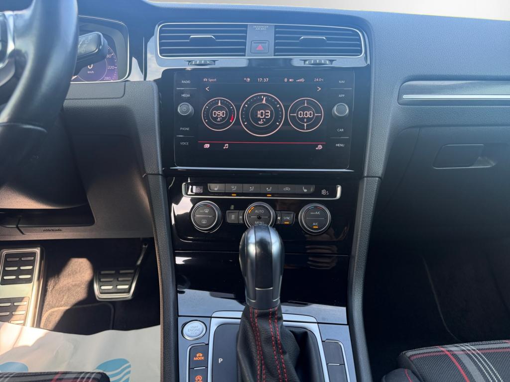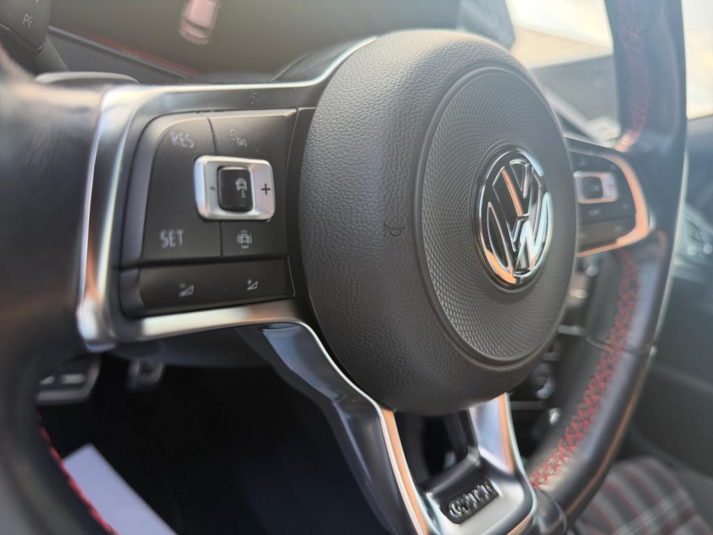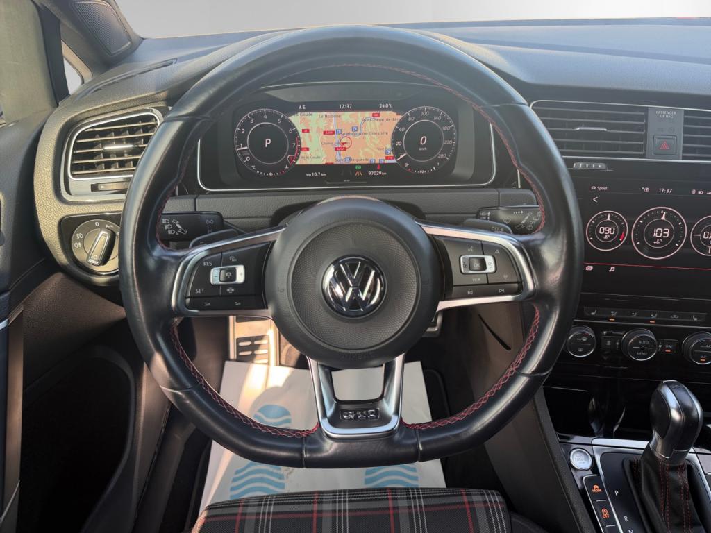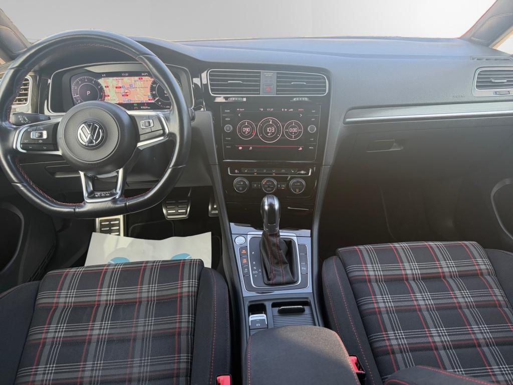 3 appuie-tête arrière + ceintures de sécurité arrière 3 pointsAbonnement aux Services Mobiles en ligne Car-Net ‘Guide & Inform' 36 moisAccoudoir central avant réglable avec compartiment de rangement, deux porte-gobelets intégrés et deux bouches d'aération derrière l'accoudoir pour les passagers arrièreActive Info Display : combiné d'instruments entièrement digital haute résolution couleurAide au stationnement avant et arrière avec signaux sonores et visualisation de la distance des obstacles sur l'écran de la radioAirbag genoux conducteurAirbags frontaux conducteur et passager (déconnectable côté passager)Airbags latéraux avantAirbags rideaux avant et arrièreAlerte de perte de pression des pneusAntenne arrière de toit intégréeAnti-démarrage électroniqueAntipatinage électronique ASRAppel d’urgence (Inclus les services Car-Net 'Security & Service')Application Volkswagen Media ControlApplications décoratives “Honeycombed Black” pour tableau de bord côté passager avant ainsi que pour revêtements de portesApplications décoratives “piano noir laqué” pour tableau de bord côté conducteur ainsi que pour console centraleAppuis-tête à sécurité optimisée réglables en hauteur sur les sièges conducteur et passager avantAssistance au contrebraquageAssistance au freinage d'urgenceAumônière au dos des sièges conducteur et passager avantAvertisseur sonore 2 tons et témoin d'oubli du port de la ceinture de sécurité à l'avantBanquette arrière rabattable 2/3 - 1/3 avec accoudoir central et trappe à skisBlocage de différentiel d'essieu avant ‘VAQ'Blocage électronique de différentiel EDSBoîte à gants réfrigéréeBoutons d'allumage des phares avec filet chroméBoutons de lève-glace et de réglage de rétroviseurs avec filet chroméCache-bagages amovibleCaméra de recul avec visualisation de la zone située à l'arrière du véhicule sur l'écran de la radio ou de la radionavigationCar-Net "App-Connect"Catadioptre dans la partie inférieure des portièresCeintures de sécurité avant trois points à enrouleur, réglables en hauteur, avec prétentionneursCerclage chromé des instruments de bord et des aérateursCiel de pavillon noirClimatisation automatique ‘Climatronic’ bi-zone avec filtre antiallergène, réglable séparément pour le conducteur et le passager avantCompartiment de rangement au centre des deux siègesCompartiment de rangement dans le coffreConsole de pavillon avec 1 compartiment de rangement ferméCorrecteur électronique de trajectoire ESPDétection piétonDirection électromécanique à assistance variable en fonction de la vitesseDirection progressiveDispositif de fixation pour deux sièges enfants suivant norme ISOFIX aux places extérieures arrièreDisques de frein 17” à l'avant et à l'arrièreDisques de frein ventilés à l'arrièreEclairage à LED de la plaque d'immatriculation arrièreEclairage d’ambiance rouge dans les portes avantEtriers de frein rouge à l'avant et à l'arrièreFatigue Detection : Système de détection de fatigue du conducteurFeux arrière sombres à LED avec clignotants défilantsFrein de stationnement électrique avec fonction d'immobilisation en pente ‘Auto-Hold'. Le véhicule se maintient automatiquement en pente et une simple action sur l'accélérateur suffit à désactiver le freinInterface BluetoothJantes en alliage léger ‘Brooklyn' 7J X 17” et pneumatiques 225/45 R17 avec écrous antivol et châssis sportKeyless Access : Système de verrouillage/déverrouillage sans clé et démarrage avec bouton start/stopKit de dépannage : compresseur 12 volts et produit d'étanchéité de pneuLave-essuie-glace arrière à balayage intermittentLiseré rouge dans la calandre et les pharesLogo ‘GTI' écrit en blanc sur les étriers de frein rouge à l'avantMiroir de courtoisie éclairé dans les pare-soleilOrdinateur de bord couleur avec affichage multifonctionPack VisibilitéPare-chocs avant et arrière spécifiques GTIPédales et repose-pied en acier inoxydable brosséPeinture unie Blanc PurPoignées de portes et rétroviseurs extérieur couleurs carrosseriePorte-boissons (2) à l'avant avec volet et porte-boissons (2) à l'arrière escamotablesPre Safe Assist' : Système proactif de protection des passagersPrise 12V dans le coffrePrise USB compatible AppleProjecteurs LED pour feux de route et feux de croisement avec feux de jour à LED et réglage dynamique du site des pharesProtection anti-démarrageRégulateur de vitesse adaptatif (ACC)Régulateur électronique de couple MSRRépartiteur de freinage (EBV)Rétroviseurs extérieurs inclinables pour marche arrièreRétroviseurs extérieurs rabattables automatiquementRétroviseurs extérieurs rabattables et réglables électriquement, avec fonction mémoire et dégivrage séparéSélection du profil de conduiteSeuils de portes avant éclairés GTISiège conducteur réglable en hauteur manuellementSièges avant Sport avec Sellerie tissu ‘Clark’Sortie d'échappement chromée à gauche et à droiteSpots de lecture : deux à l'avant et deux à l'arrièreSystème d'antiblocage des roues ABSSystème de Freinage anti-multicollisionSystème Front AssistSystème Navigation & Infotainment ‘Discover Media'Système Start/ Stop avec récupération d'énergie de freinageTapis de sol avant et arrièreVerrouillage centralisé avec télécommande à fréquence radio par clé rétractableVitres arrière électriquesVitres arrière et lunette arrière surteintées à 65%Vitres athermiques teintées vertesVitres avant électriquesVolant et soufflet du levier de vitesses en cuir avec surpiqûres rougesVolant réglable en hauteur et en profondeurVolant Sport cuir multifonction avec applications aluminium avec palettes au volant