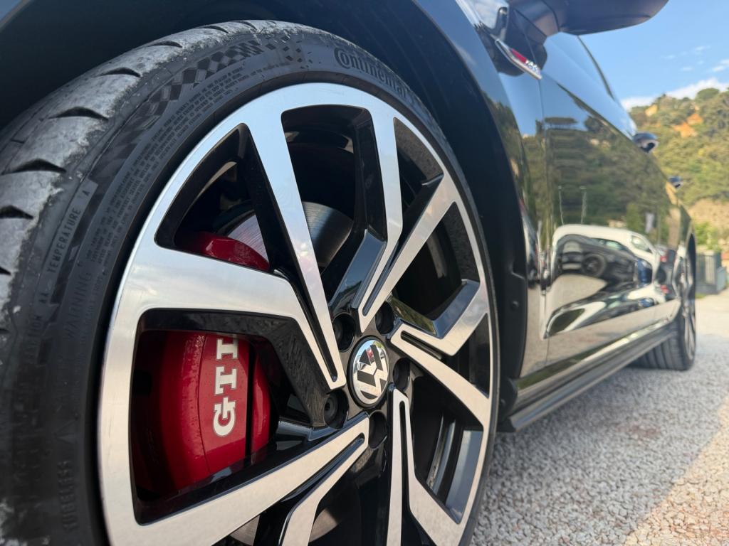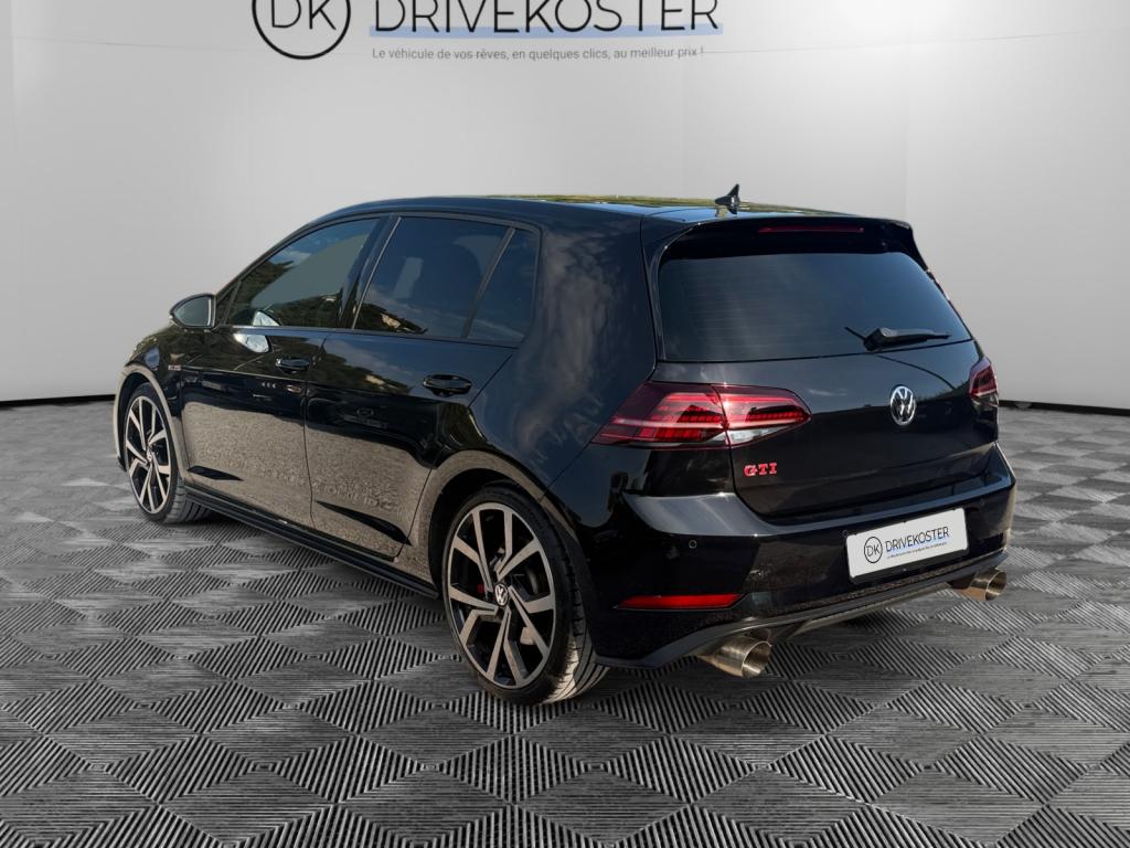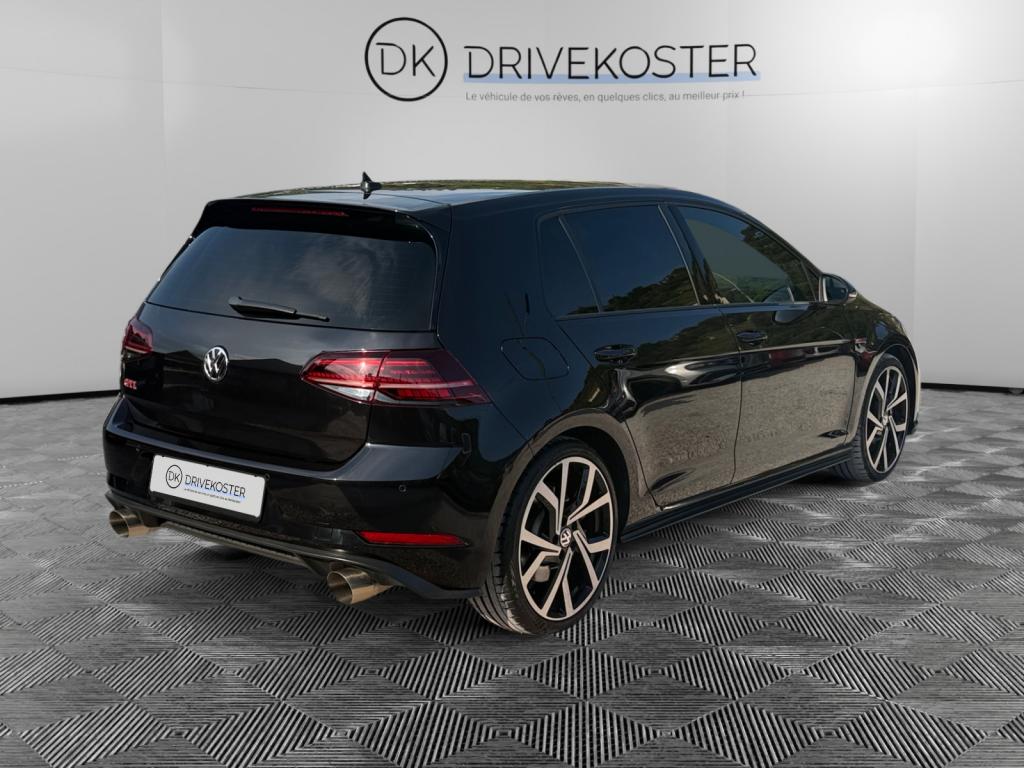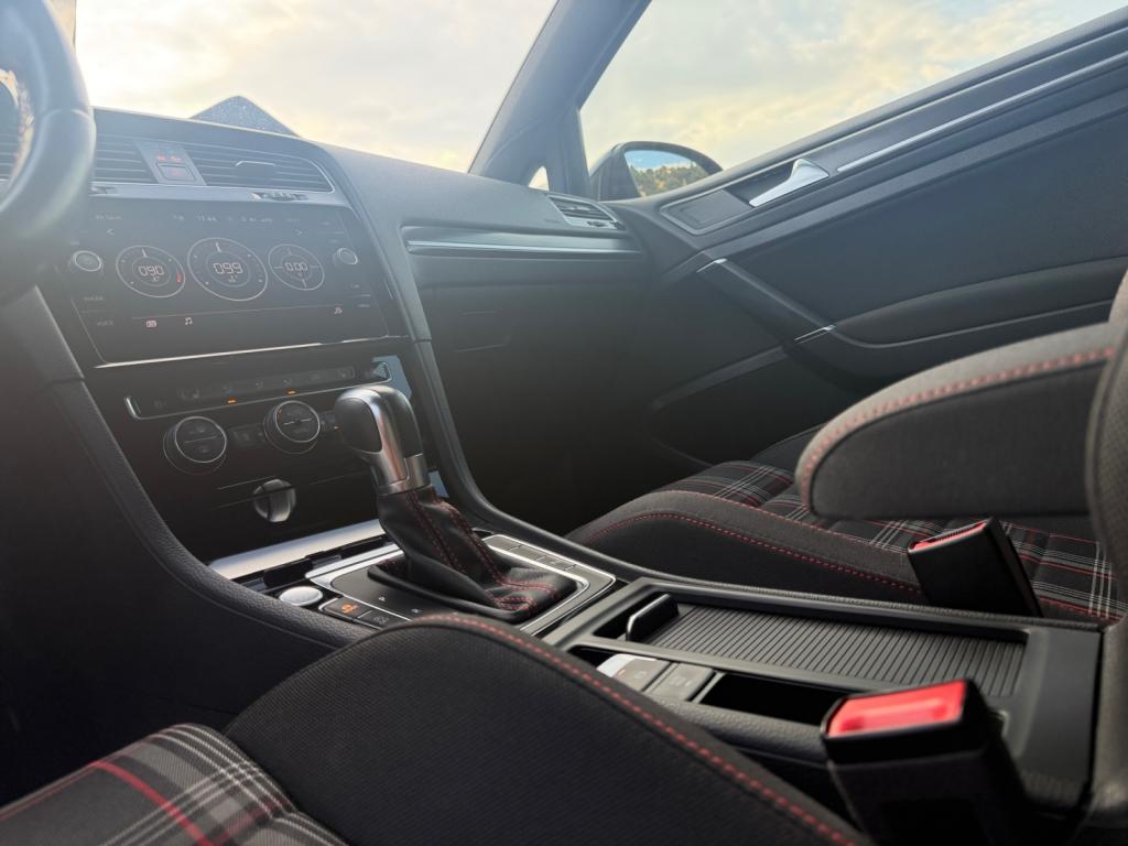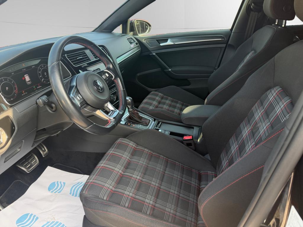 3 appuie-tête arrière + ceintures de sécurité arrière 3 pointsAbonnement aux Services Mobiles en ligne Car-Net ‘Guide & Inform' 36 moisAccoudoir central avant réglable avec compartiment de rangement, deux porte-gobelets intégrés et deux bouches d'aération derrière l'accoudoir pour les passagers arrièreActive Info Display : combiné d'instruments entièrement digital haute résolution couleurAide au stationnement avant et arrière avec signaux sonores et visualisation de la distance des obstacles sur l'écran de la radioAirbag genoux conducteurAirbags frontaux conducteur et passager (déconnectable côté passager)Airbags latéraux avantAirbags rideaux avant et arrièreAlerte de perte de pression des pneusAntenne arrière de toit intégréeAnti-démarrage électroniqueAntipatinage électronique ASRAppel d’urgence (Inclus les services Car-Net 'Security & Service')Application Volkswagen Media ControlApplications décoratives “Honeycombed Black” pour tableau de bord côté passager avant ainsi que pour revêtements de portesApplications décoratives “piano noir laqué” pour tableau de bord côté conducteur ainsi que pour console centraleAppuis-tête à sécurité optimisée réglables en hauteur sur les sièges conducteur et passager avantAssistance au contrebraquageAssistance au freinage d'urgenceAumônière au dos des sièges conducteur et passager avantAvertisseur sonore 2 tons et témoin d'oubli du port de la ceinture de sécurité à l'avantBanquette arrière rabattable 2/3 - 1/3 avec accoudoir central et trappe à skisBlocage de différentiel d'essieu avant ‘VAQ'Blocage électronique de différentiel EDSBoîte à gants réfrigéréeBoutons d'allumage des phares avec filet chroméBoutons de lève-glace et de réglage de rétroviseurs avec filet chroméCache-bagages amovibleCaméra de recul avec visualisation de la zone située à l'arrière du véhicule sur l'écran de la radio ou de la radionavigationCar-Net "App-Connect"Catadioptre dans la partie inférieure des portièresCeintures de sécurité avant trois points à enrouleur, réglables en hauteur, avec prétentionneursCerclage chromé des instruments de bord et des aérateursCiel de pavillon noirClimatisation automatique ‘Climatronic’ bi-zone avec filtre antiallergène, réglable séparément pour le conducteur et le passager avantCompartiment de rangement au centre des deux siègesCompartiment de rangement dans le coffreConsole de pavillon avec 1 compartiment de rangement ferméCorrecteur électronique de trajectoire ESPDétection piétonDirection électromécanique à assistance variable en fonction de la vitesseDirection progressiveDispositif de fixation pour deux sièges enfants suivant norme ISOFIX aux places extérieures arrièreDisques de frein 17” à l'avant et à l'arrièreDisques de frein ventilés à l'arrièreEclairage à LED de la plaque d'immatriculation arrièreEclairage d’ambiance rouge dans les portes avantEtriers de frein rouge à l'avant et à l'arrièreFatigue Detection : Système de détection de fatigue du conducteurFeux arrière sombres à LED avec clignotants défilantsFrein de stationnement électrique avec fonction d'immobilisation en pente ‘Auto-Hold'. Le véhicule se maintient automatiquement en pente et une simple action sur l'accélérateur suffit à désactiver le freinInterface BluetoothJantes en alliage léger ‘Brooklyn' 7J X 17” et pneumatiques 225/45 R17 avec écrous antivol et châssis sportKeyless Access : Système de verrouillage/déverrouillage sans clé et démarrage avec bouton start/stopKit de dépannage : compresseur 12 volts et produit d'étanchéité de pneuLave-essuie-glace arrière à balayage intermittentLiseré rouge dans la calandre et les pharesLogo ‘GTI' écrit en blanc sur les étriers de frein rouge à l'avantMiroir de courtoisie éclairé dans les pare-soleilOrdinateur de bord couleur avec affichage multifonctionPack VisibilitéPare-chocs avant et arrière spécifiques GTIPédales et repose-pied en acier inoxydable brosséPeinture unie Blanc PurPoignées de portes et rétroviseurs extérieur couleurs carrosseriePorte-boissons (2) à l'avant avec volet et porte-boissons (2) à l'arrière escamotablesPre Safe Assist' : Système proactif de protection des passagersPrise 12V dans le coffrePrise USB compatible AppleProjecteurs LED pour feux de route et feux de croisement avec feux de jour à LED et réglage dynamique du site des pharesProtection anti-démarrageRégulateur de vitesse adaptatif (ACC)Régulateur électronique de couple MSRRépartiteur de freinage (EBV)Rétroviseurs extérieurs inclinables pour marche arrièreRétroviseurs extérieurs rabattables automatiquementRétroviseurs extérieurs rabattables et réglables électriquement, avec fonction mémoire et dégivrage séparéSélection du profil de conduiteSeuils de portes avant éclairés GTISiège conducteur réglable en hauteur manuellementSièges avant Sport avec Sellerie tissu ‘Clark’Sortie d'échappement chromée à gauche et à droiteSpots de lecture : deux à l'avant et deux à l'arrièreSystème d'antiblocage des roues ABSSystème de Freinage anti-multicollisionSystème Front AssistSystème Navigation & Infotainment ‘Discover Media'Système Start/ Stop avec récupération d'énergie de freinageTapis de sol avant et arrièreVerrouillage centralisé avec télécommande à fréquence radio par clé rétractableVitres arrière électriquesVitres arrière et lunette arrière surteintées à 65%Vitres athermiques teintées vertesVitres avant électriquesVolant et soufflet du levier de vitesses en cuir avec surpiqûres rougesVolant réglable en hauteur et en profondeurVolant Sport cuir multifonction avec applications aluminium avec palettes au volant